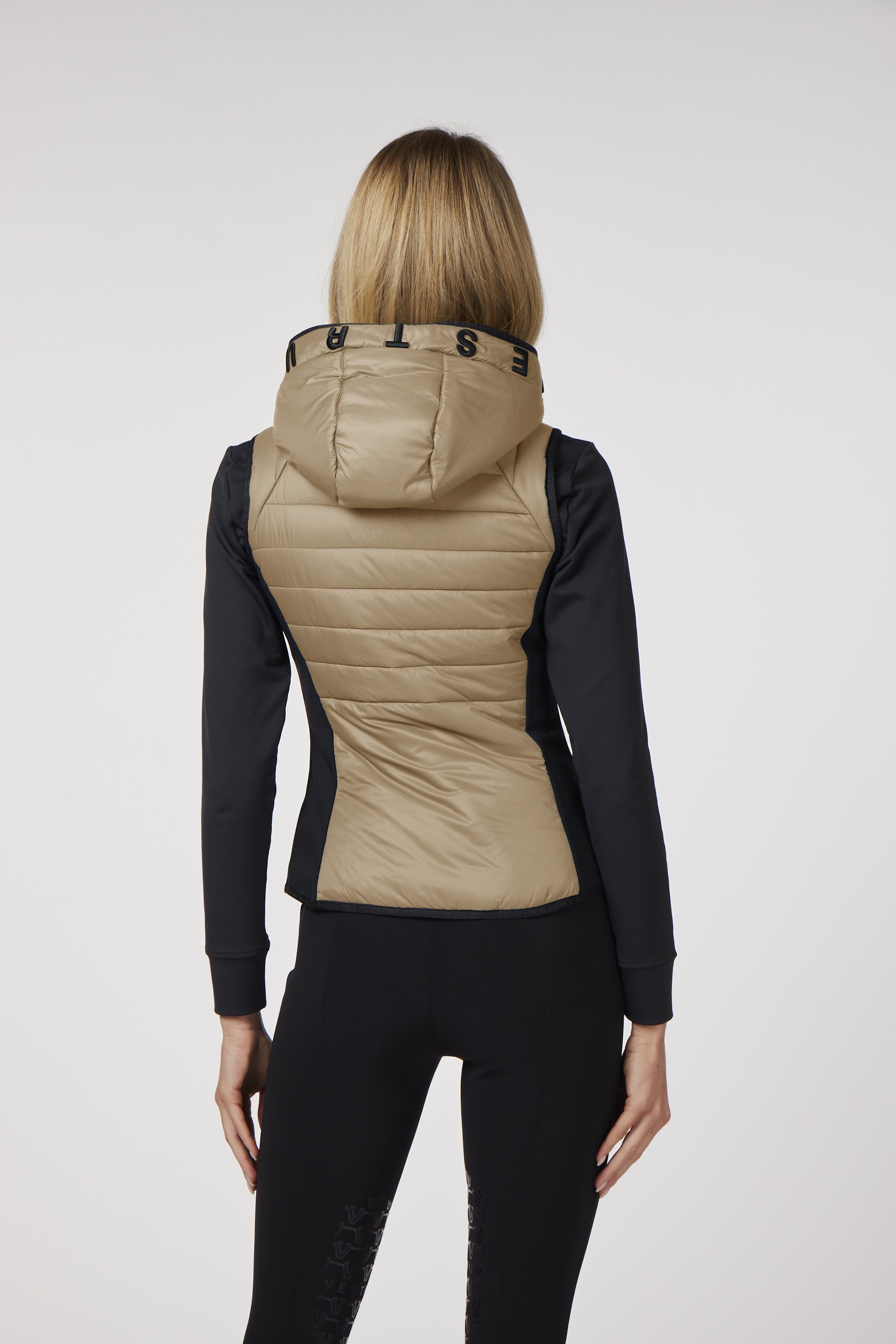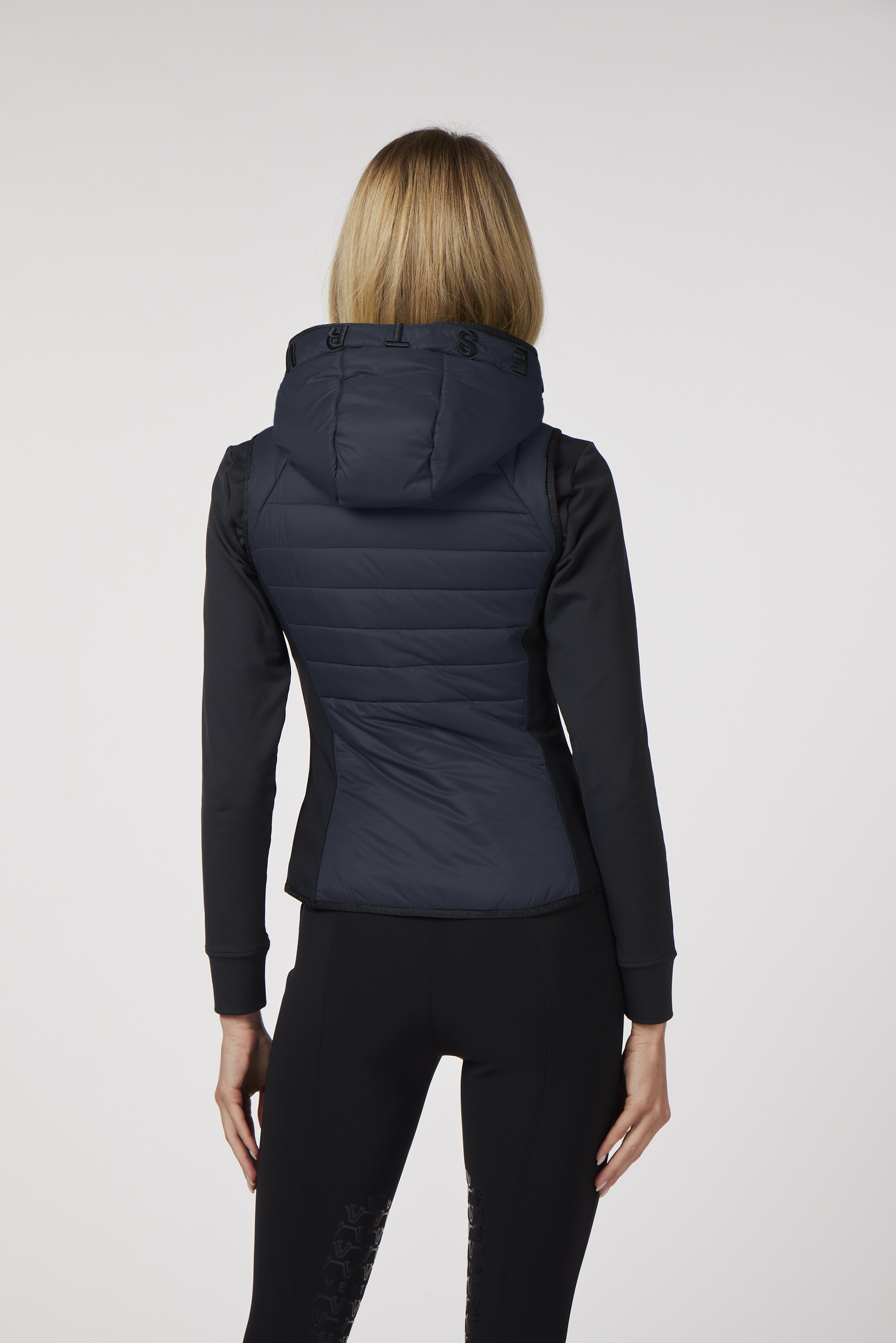 Siracusa è un gilet con cappuccio da donna, realizzato in tessuto idrorepellente e antivento, leggermente imbottito. Sul davanti è cucita una patch tono su tono e sulla fascia del cappuccio è ricamato il lettering Vestrum, sempre tono su tono, che dona originalità al capo.