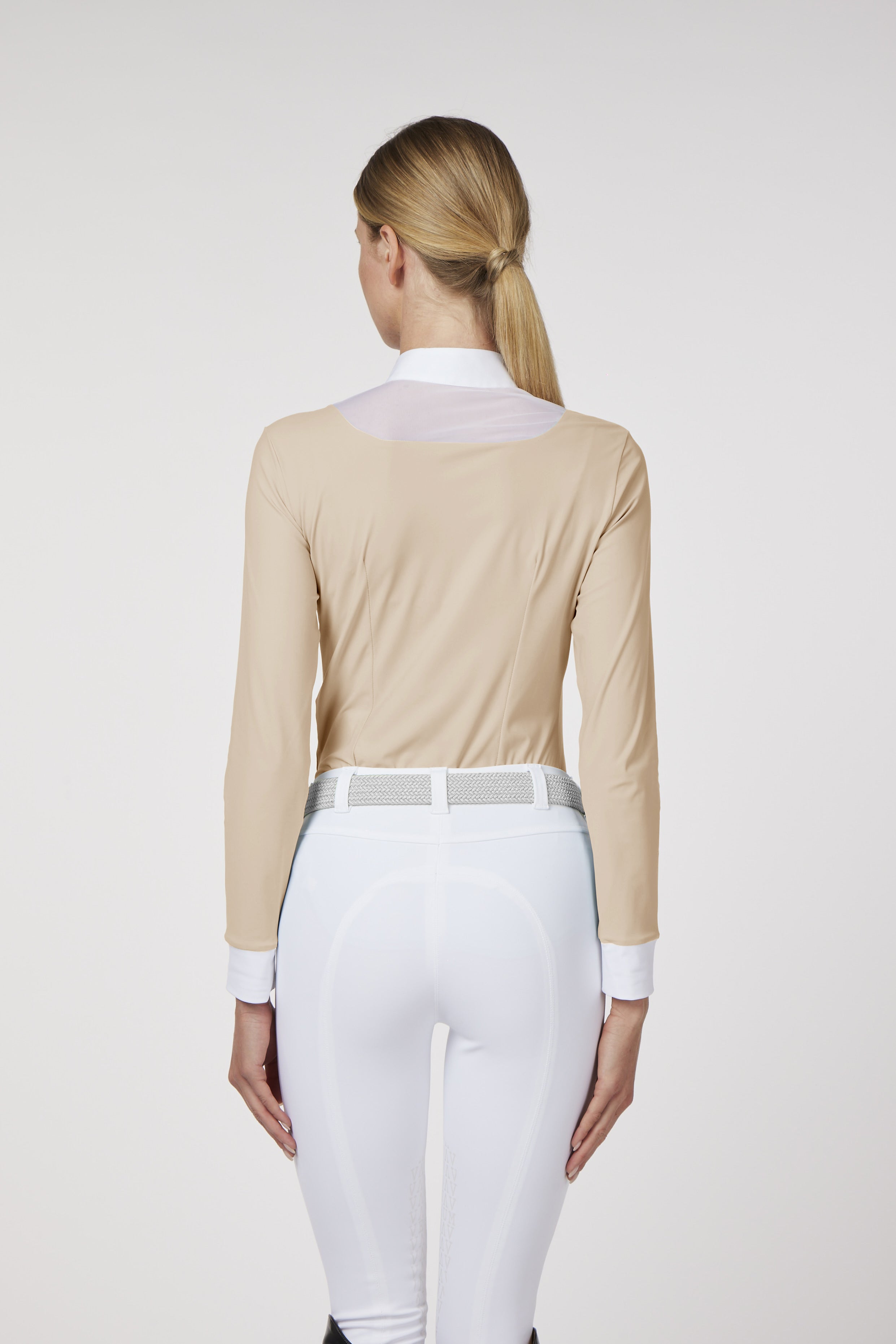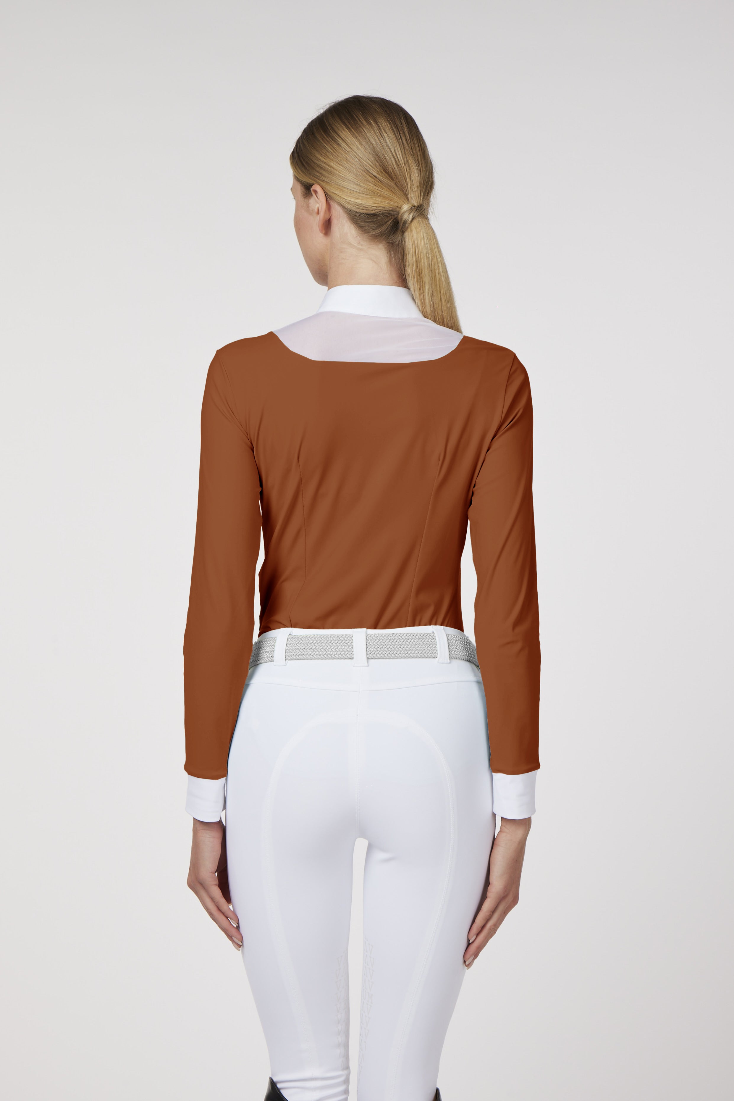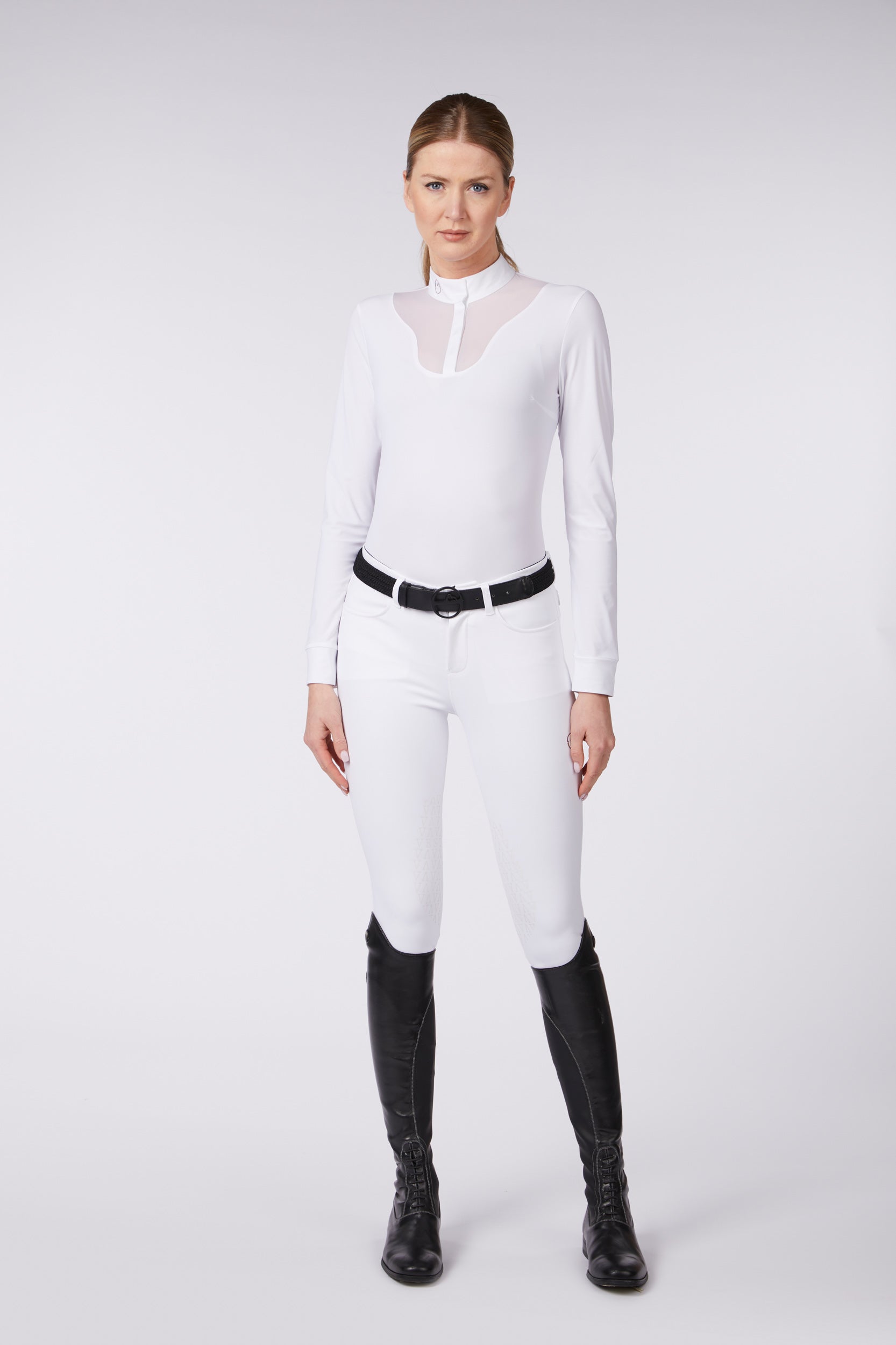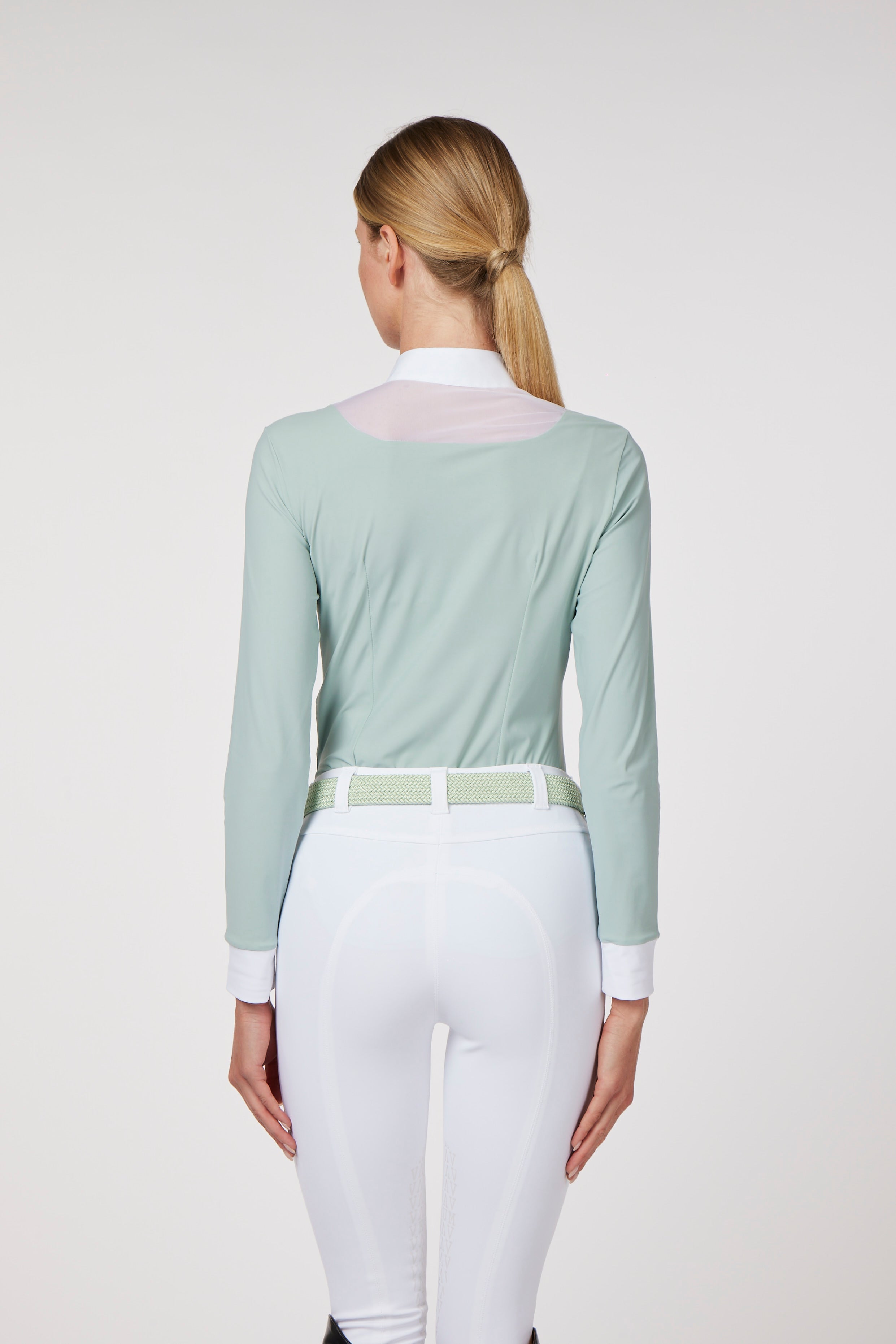 La maglia Rimini è realizzata in un tessuto leggero e traspirante che non necessita di stiratura e con filtro solare, in grado di proteggere dai raggi solari. La maglia è ideale per le gare di mezza stagione. La pettorina a contrasto è realizzata in tessuto semitrasparente. Chiusura con bottoni a pressione e colletto con logo stampato.