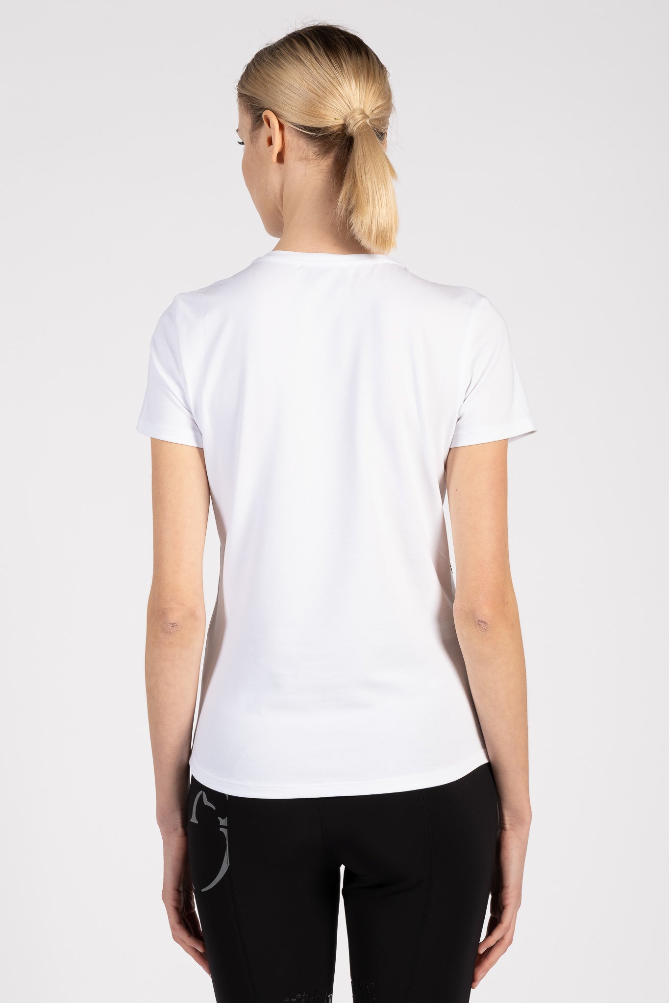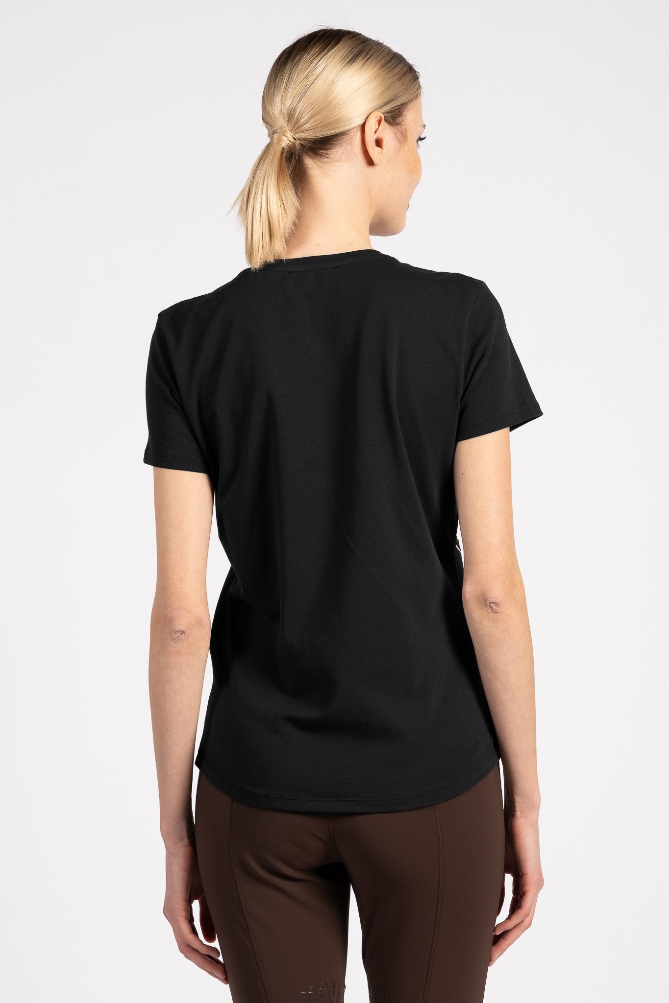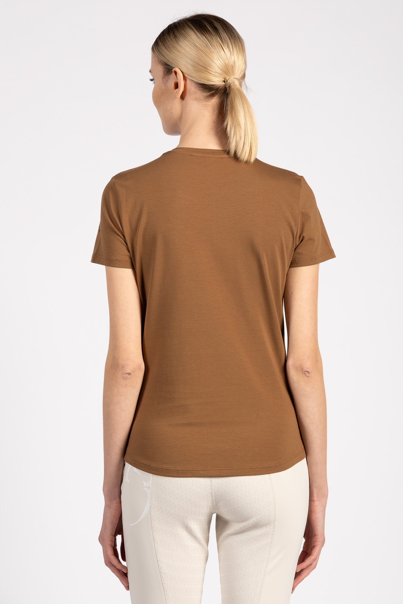 La T-shirt da donna Marbella è realizzata in morbido e confortevole cotone, ideale da indossare in qualsiasi momento della giornata. Il fronte presenta una stampa originale con cavalli, impreziosita da micro borchie sulle teste dei cavalli, che creano un raffinato effetto scintillante. Il logo Vestrum sulla manica sinistra, anch'esso realizzato con micro borchie, completa il design con un dettaglio luminoso e distintivo. Questa T-shirt da donna ispirata al mondo equestre unisce stile e personalità, perfetta da indossare durante l'allenamento, in scuderia o nel tempo libero, per portare sempre con te l'eleganza dell'equitazione.