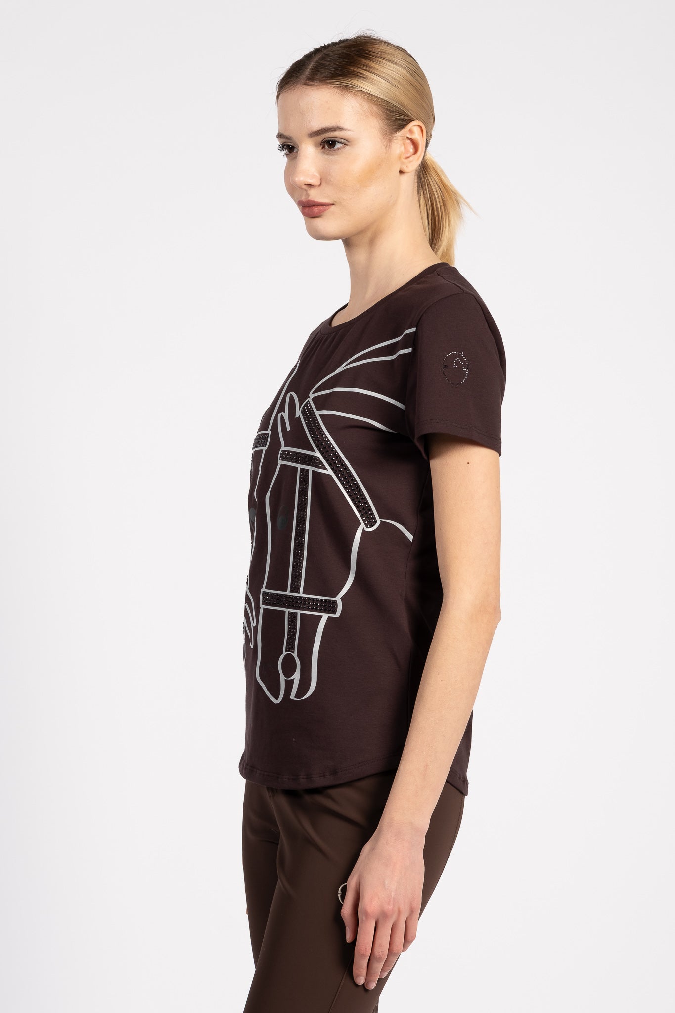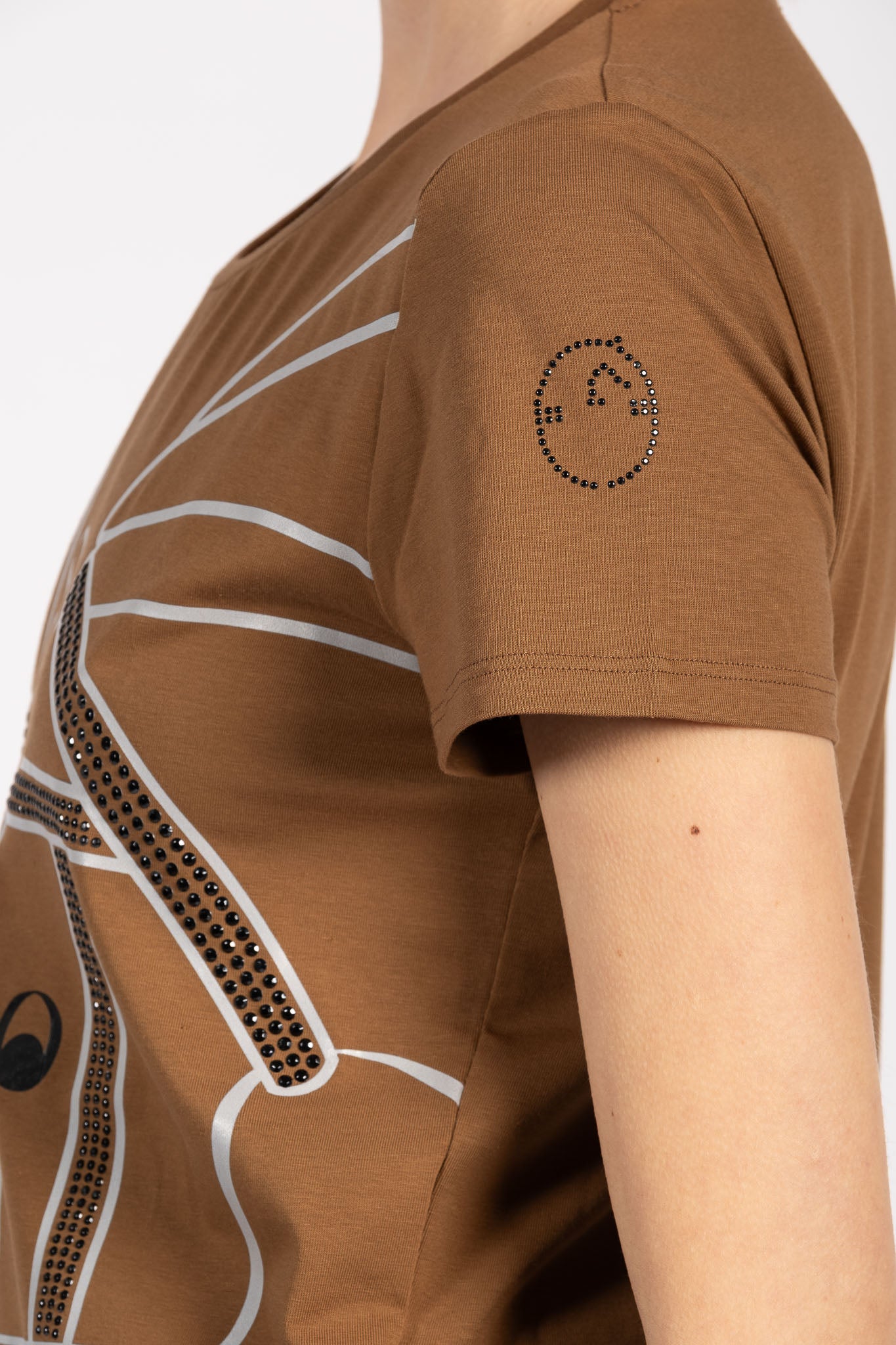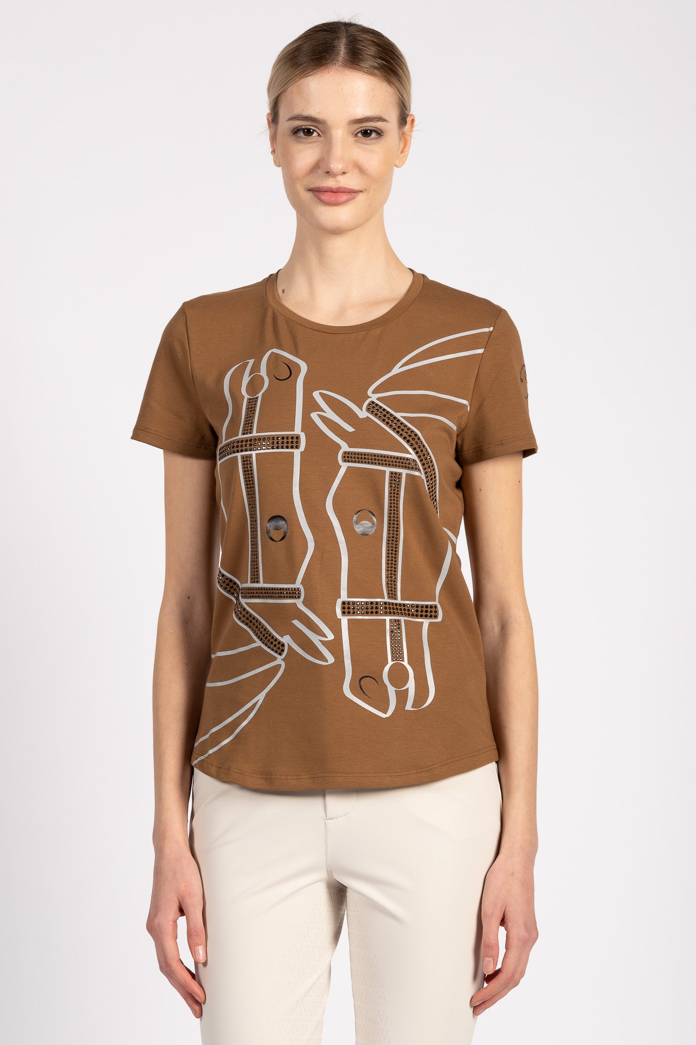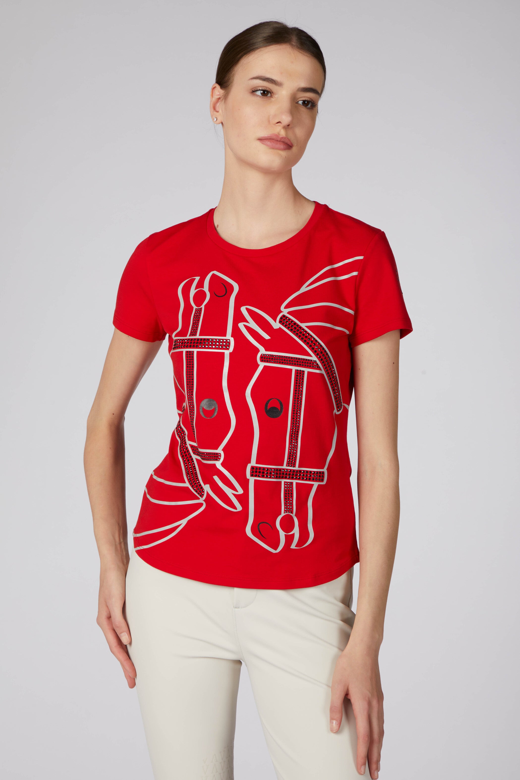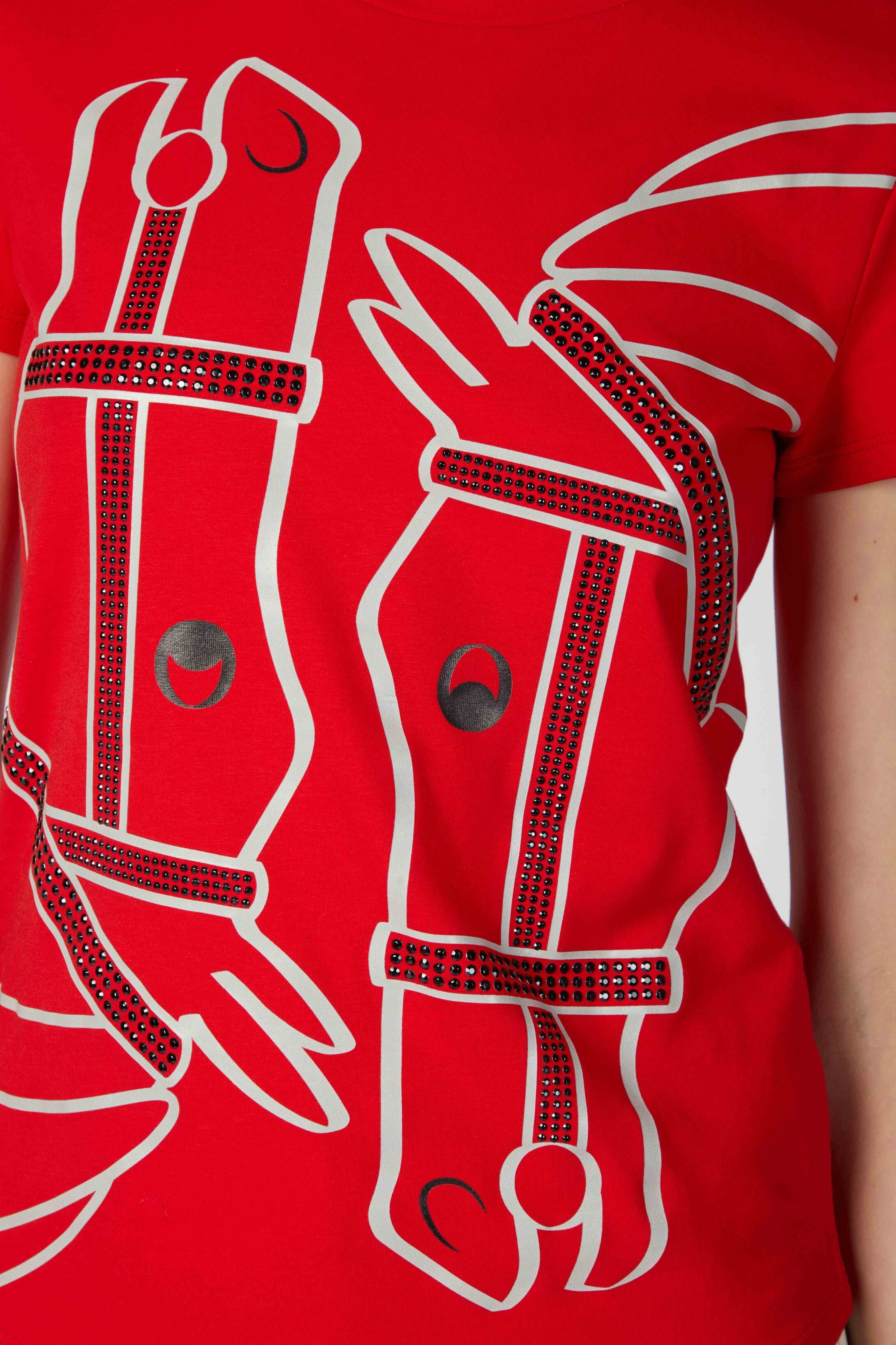 T-shirt da donna con stampa equestre e borchie