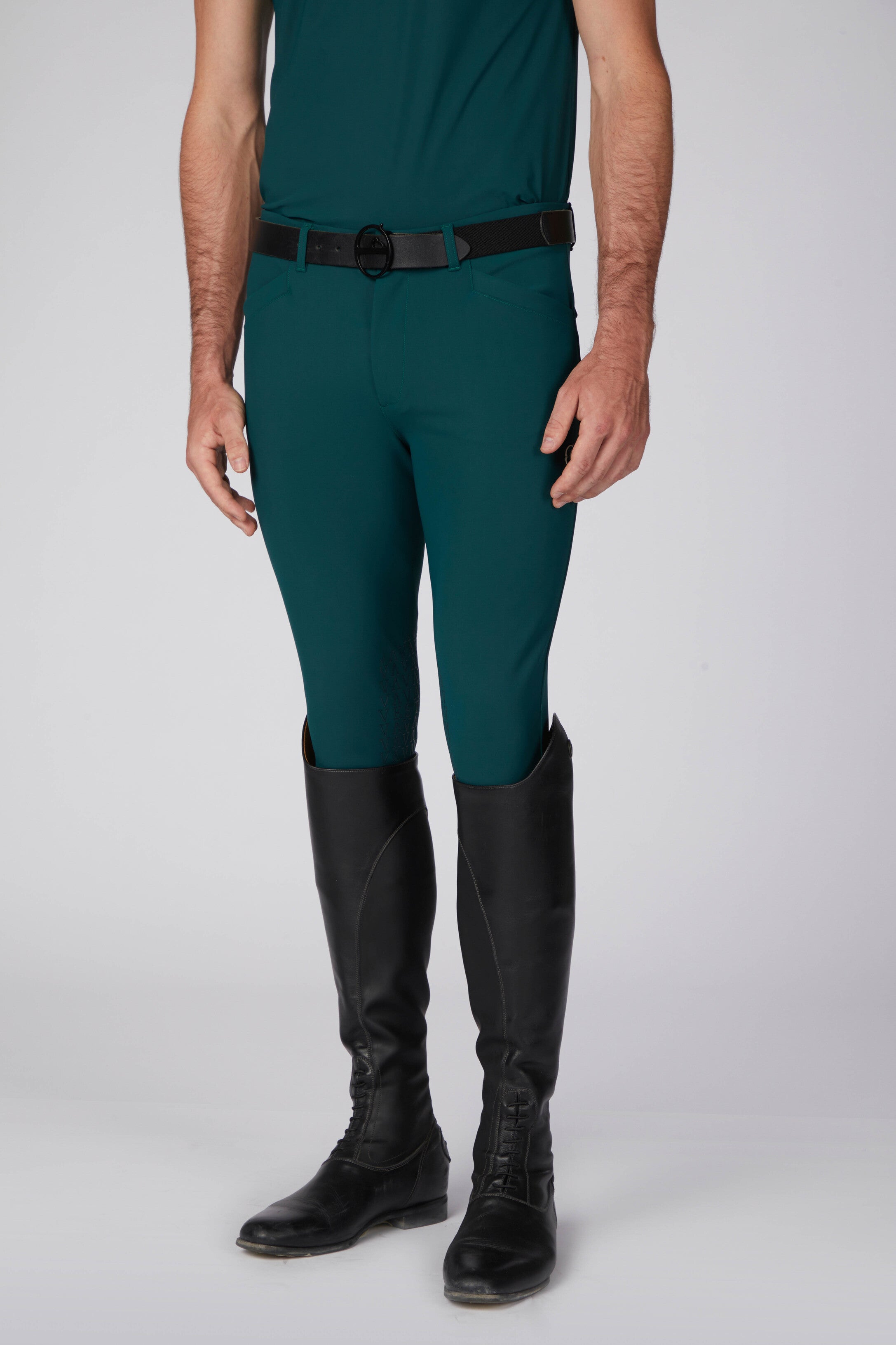 Pantaloni da equitazione da uomo, San Diego, dalla vestibilità comoda, realizzati con il nostro particolare materiale bielastico che garantisce un comfort unico. Grip sul ginocchio per una guida sicura, due tasche posteriori con chiusura personalizzata a bottone automatico.