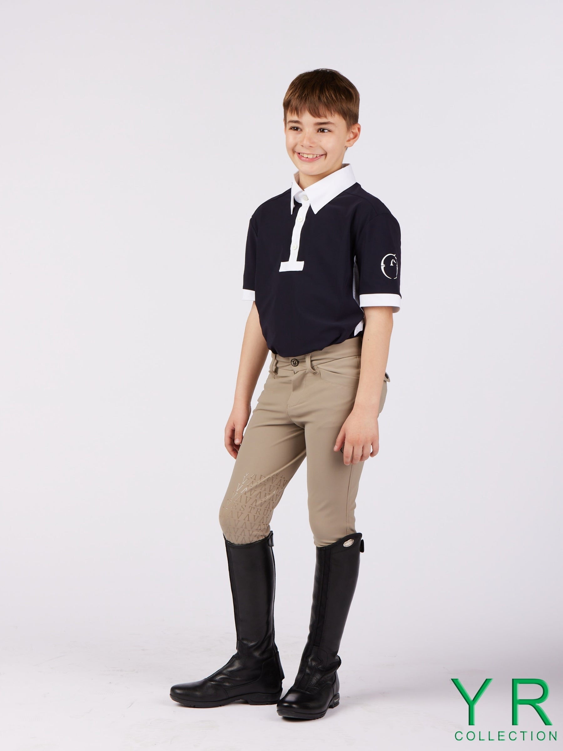 Pantaloni da equitazione regular fit per bambino, realizzati in tessuto TK, un materiale bielastico molto leggero che offre un comfort unico. Grip sulle ginocchia per una guida sicura, due tasche posteriori con chiusura a bottone automatico personalizzato.