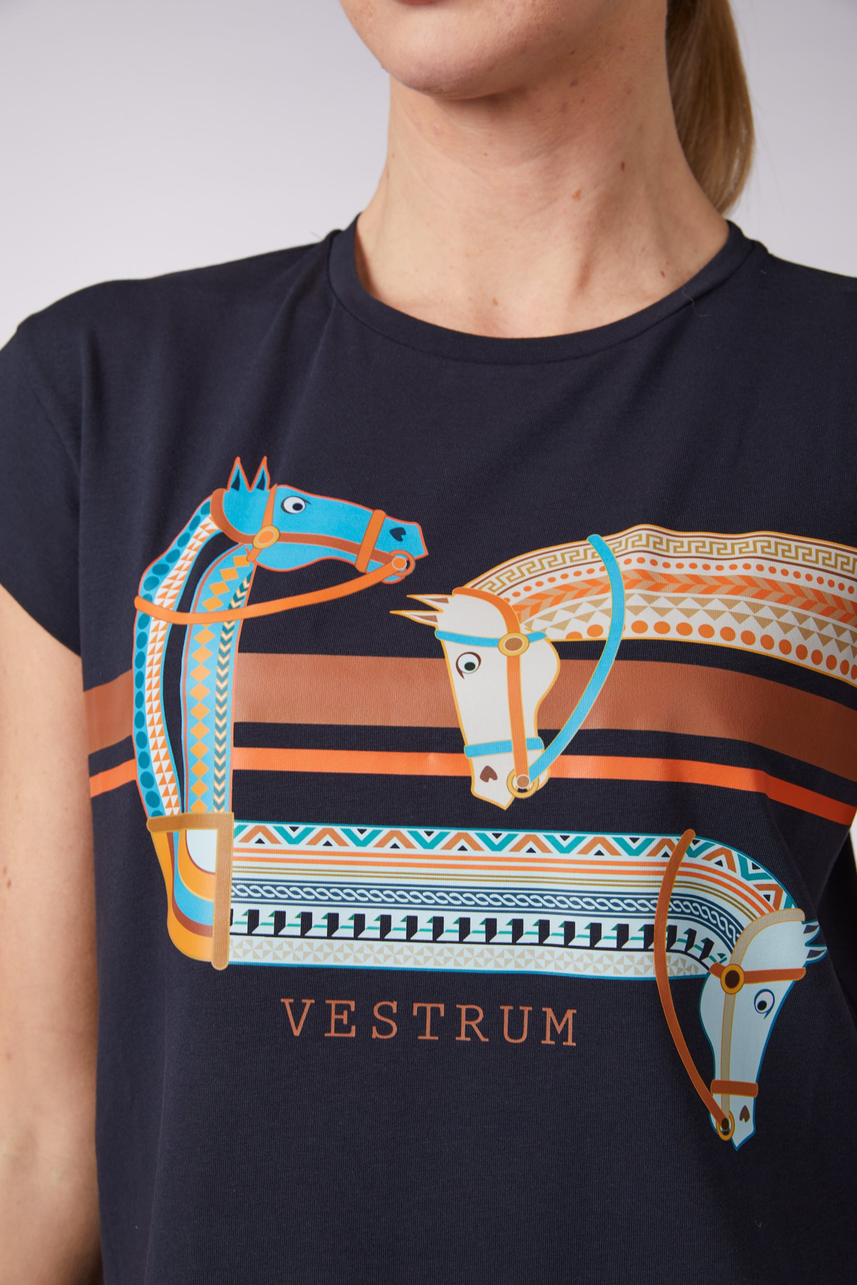T-shirt da donna realizzata in cotone bielastico di qualità, traspirante e confortevole per l'allenamento quotidiano. La stampa frontale con motivo equestre dona originalità al capo.