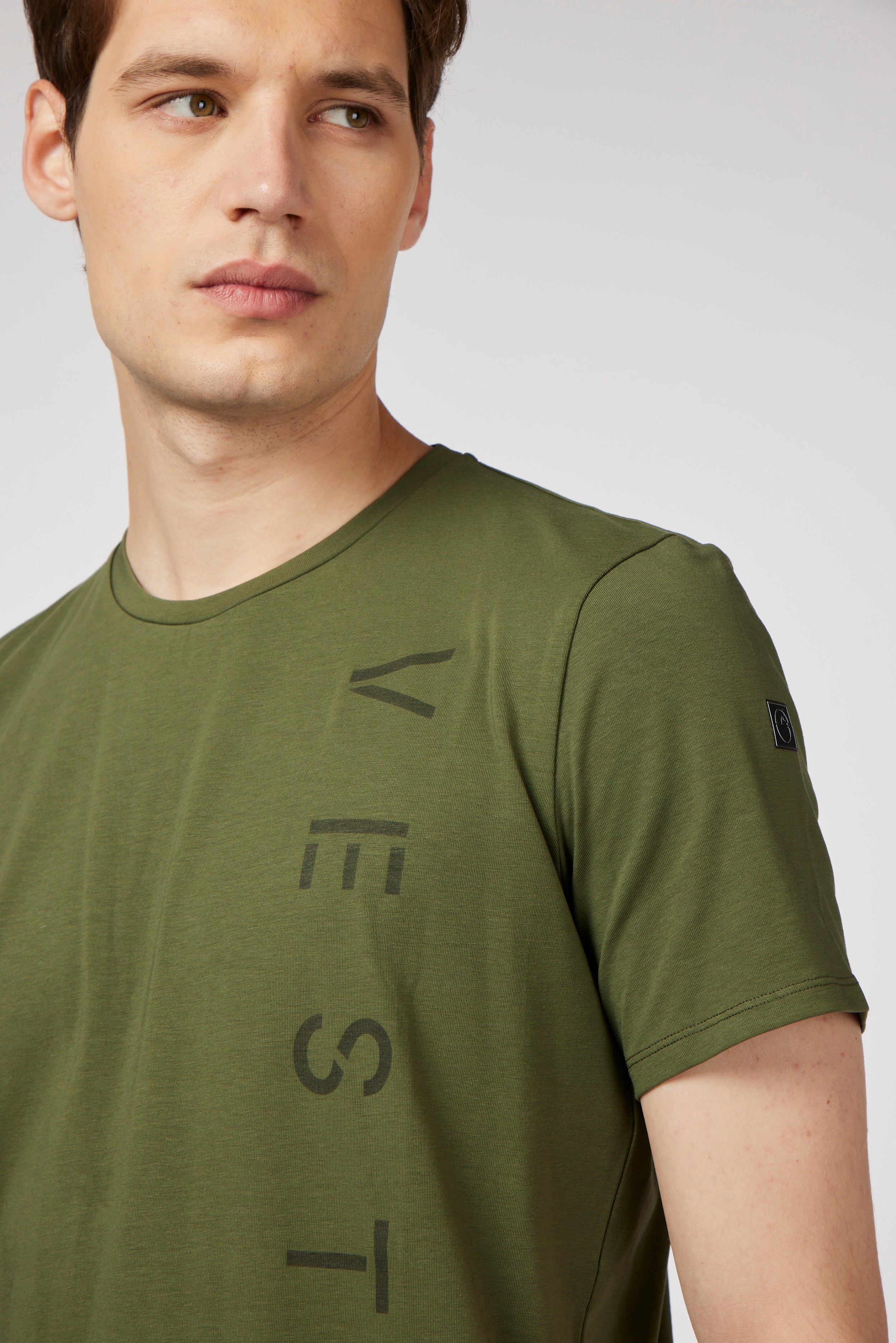 T-shirt Viareggio da uomo realizzata in cotone bielastico di qualità, traspirante e confortevole per l'allenamento quotidiano. La t-shirt è impreziosita dalla scritta verticale Vestrum.