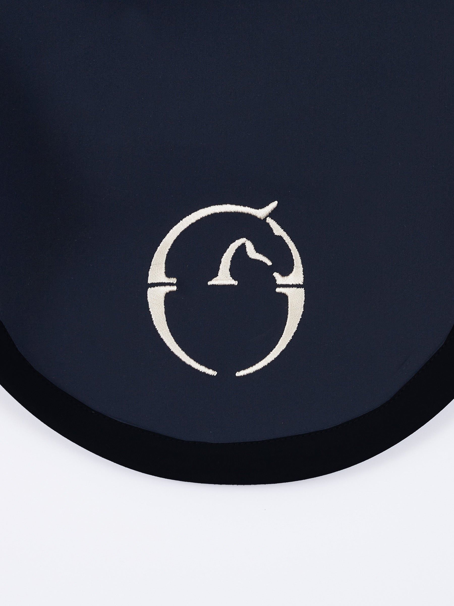 Comfortable and breathable two-way stretch jersey horse ear bonnet. Black border. Vestrum logo on the front.