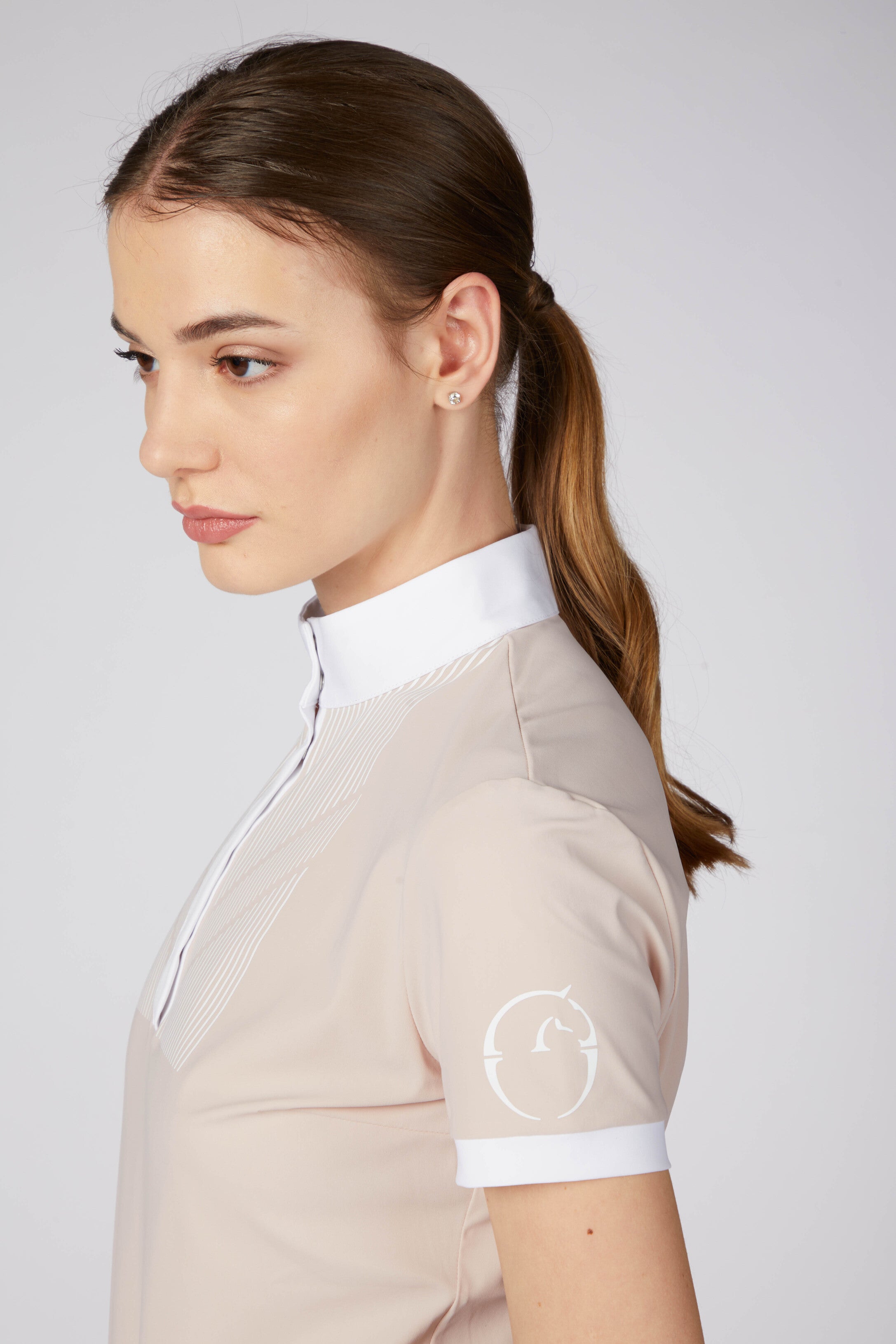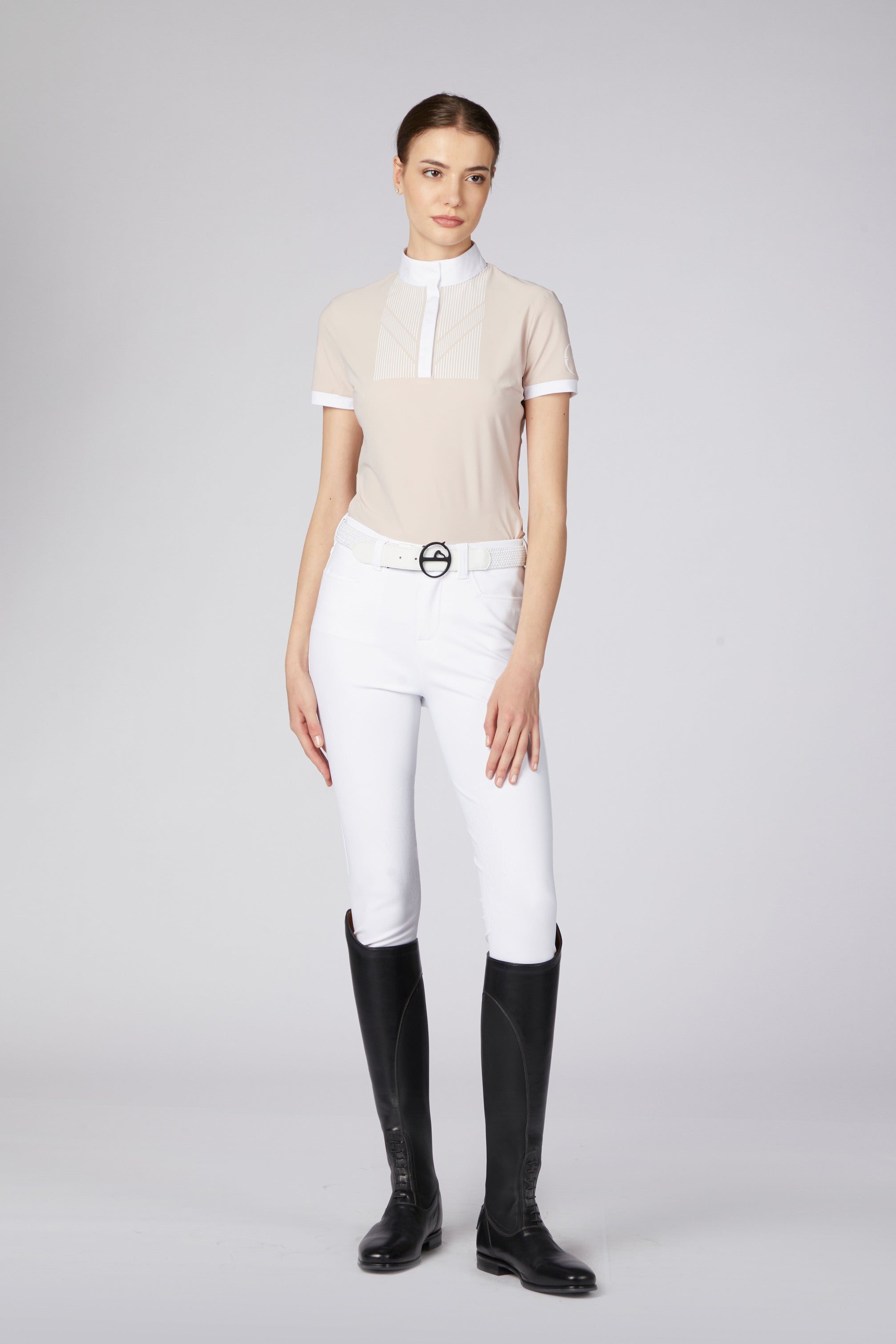 The Andoya women's shirt combines refined style and functionality. Made from bi-elastic, breathable fabric, it guarantees maximum freedom of movement and comfort on the hottest days. The mandarin collar embellished with the Vestrum logo and half-collar buttons add a touch of understated elegance. The geometric bib enhances the figure in the saddle, while the logo on the left sleeve completes the design with a distinctive detail. Ideal for spring/summer competitions, this women's riding shirt combines lightness, precision, and style, allowing you to tackle every outing with freshness.
