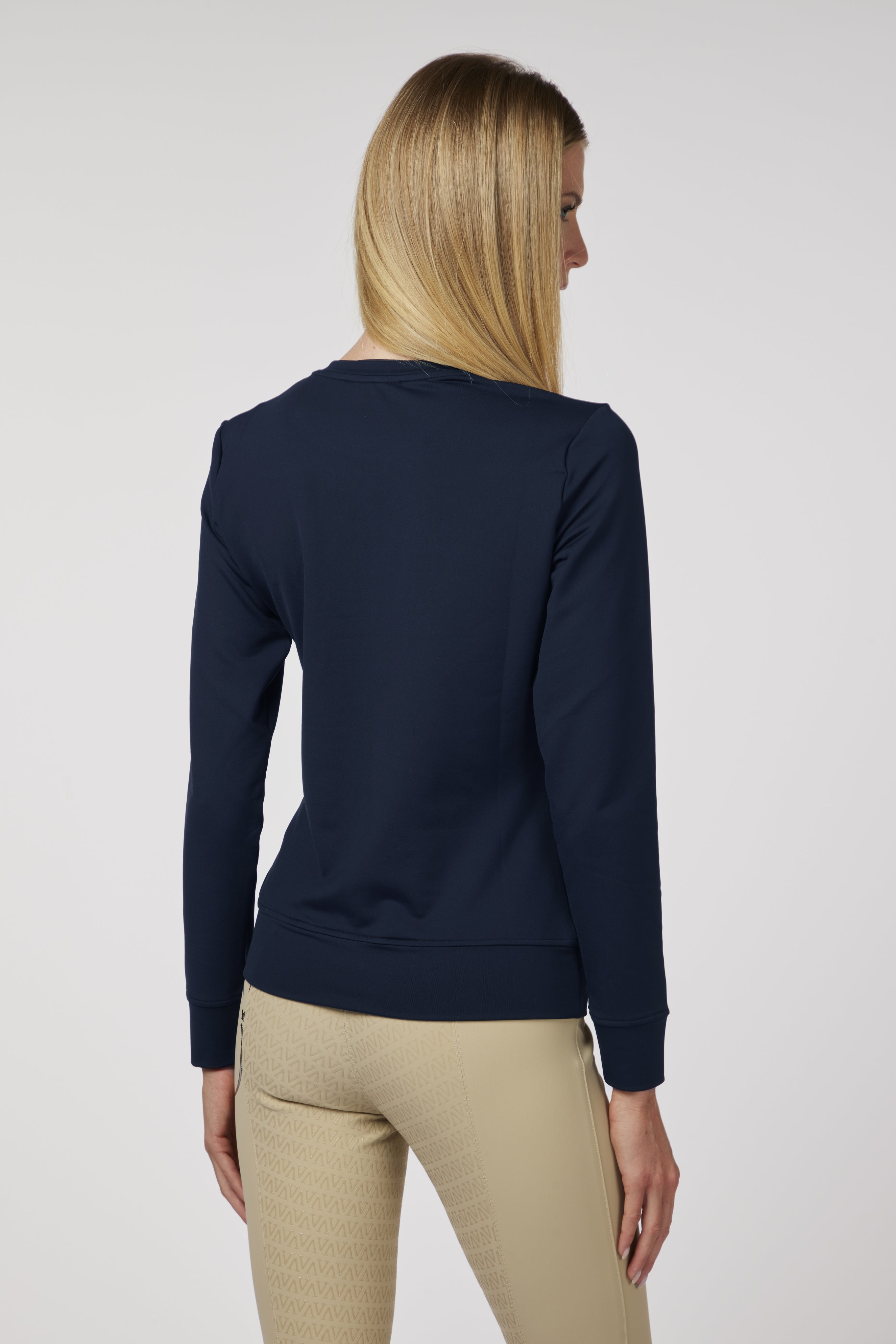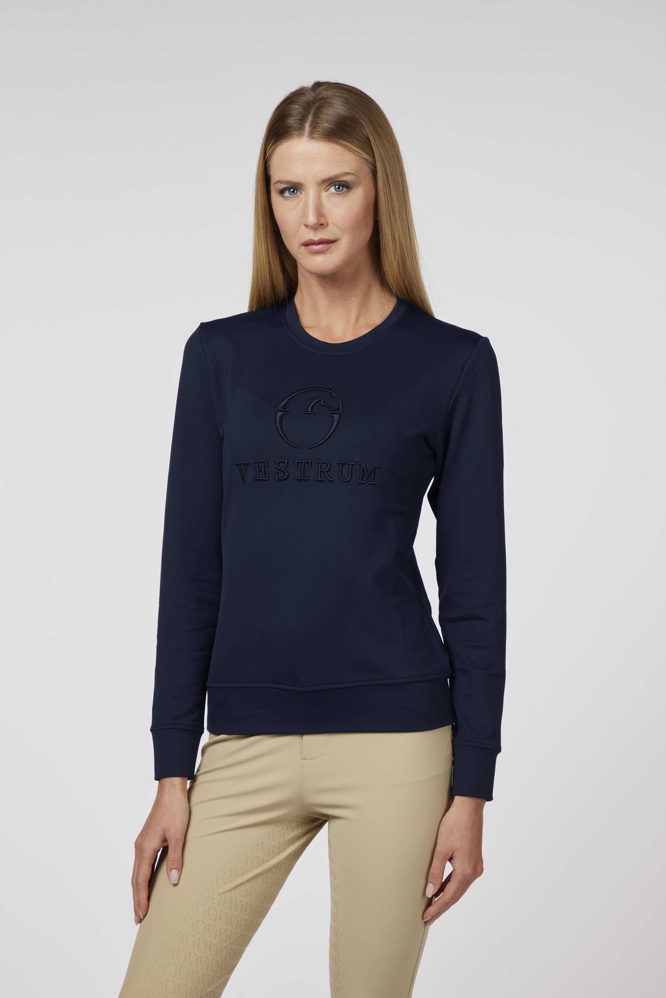 Women's Ankara technical crewneck sweatshirt is made from bielastic fabric. Soft and lightweight to the touch with a snug but comfortable fit. The sweatshirt is embellished with Vestrum embroidery on the front.