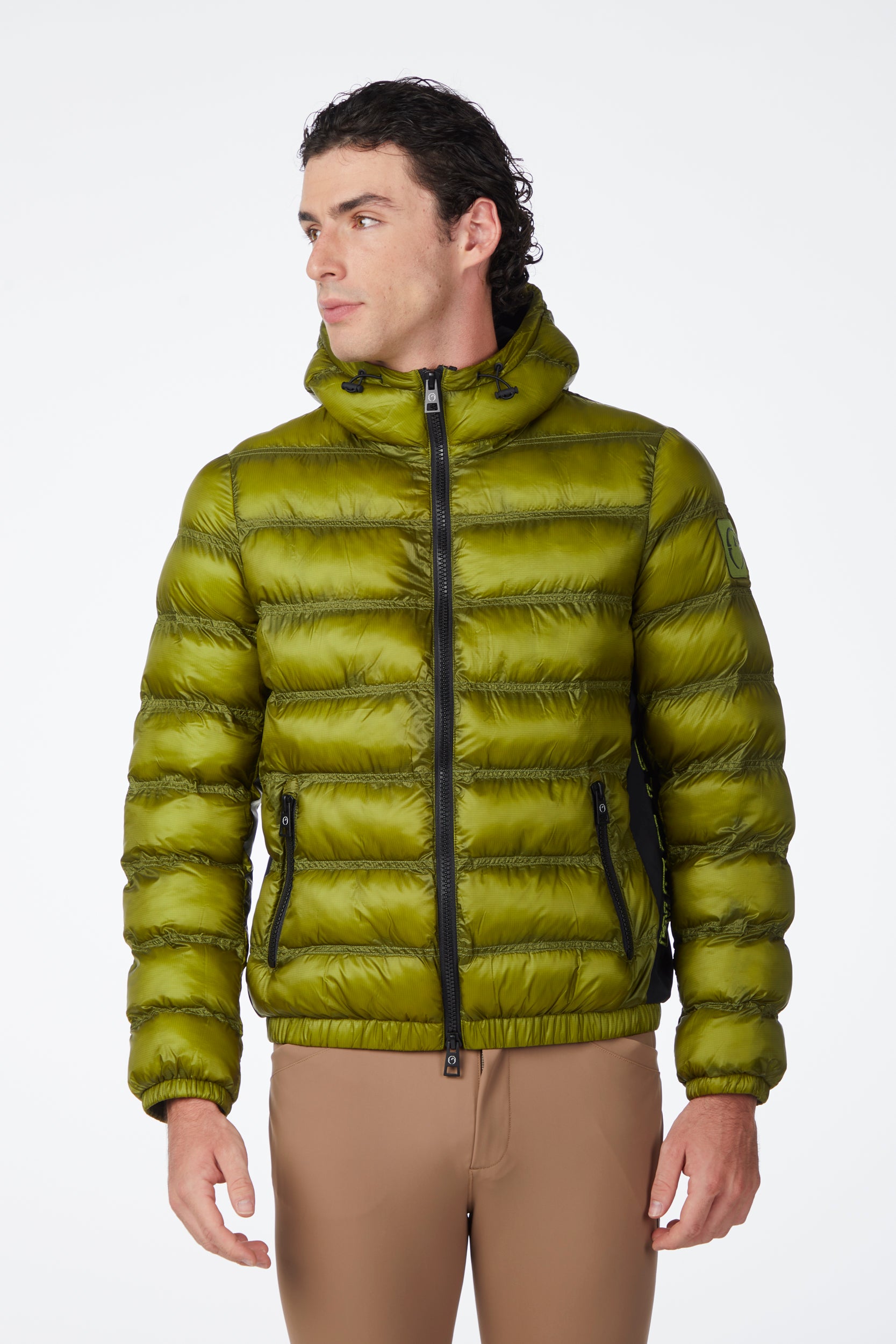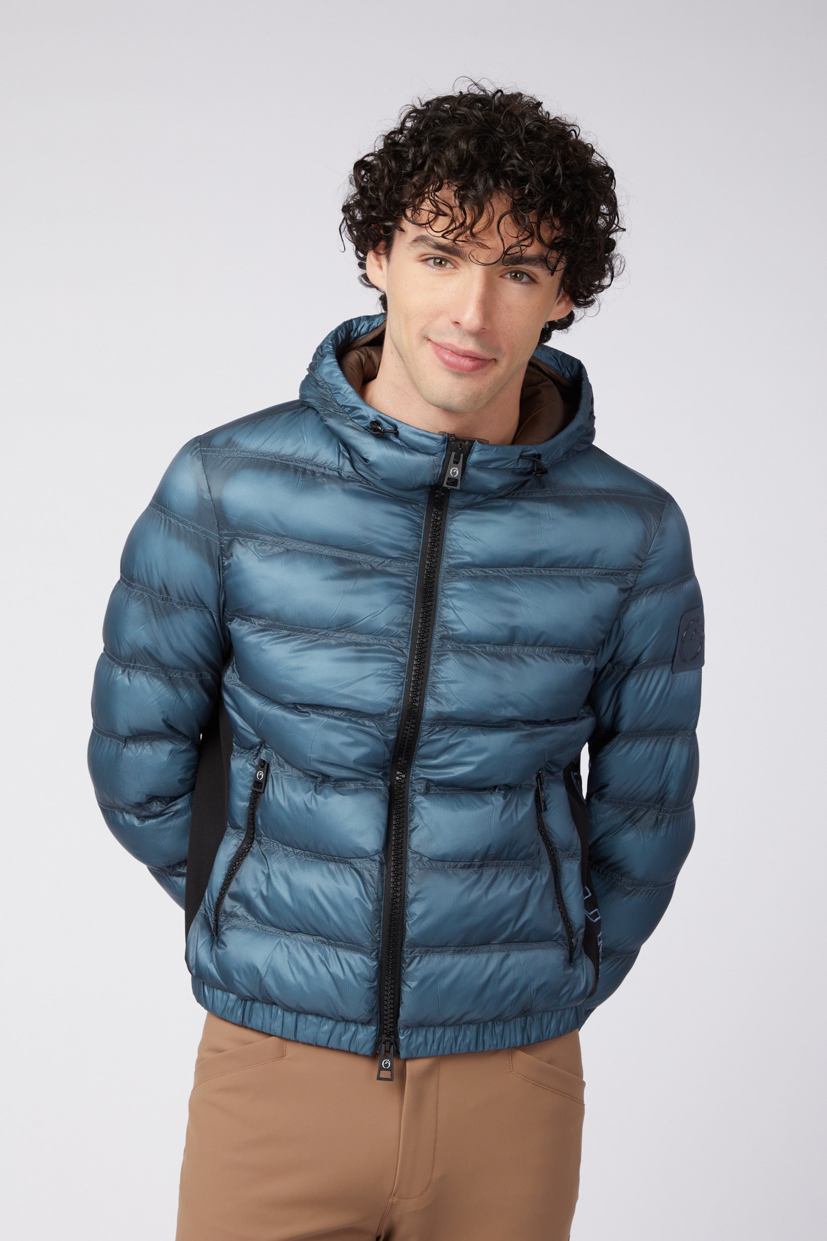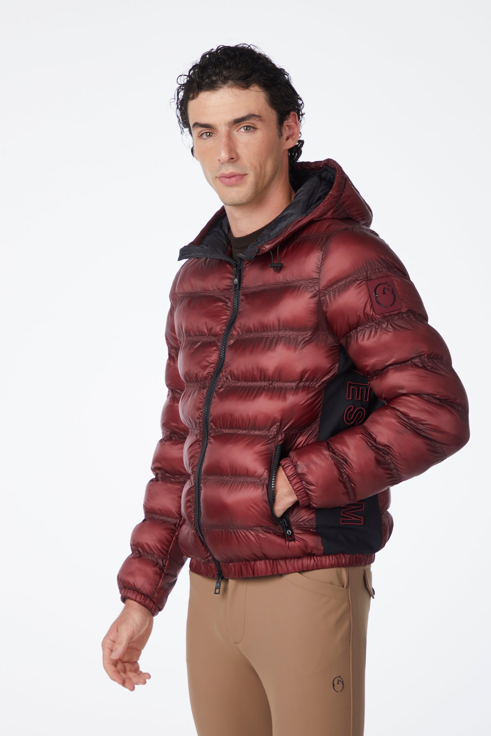 Technical men's jacket made of water-repellent and windproof nylon, designed to offer protection and comfort. The contrasting side panels, also in nylon, give a dynamic and sporty touch to the design. On the left side, the lettering "Vestrum" is embroidered in tone for an elegant look. The left sleeve features a tone-on-tone patch.