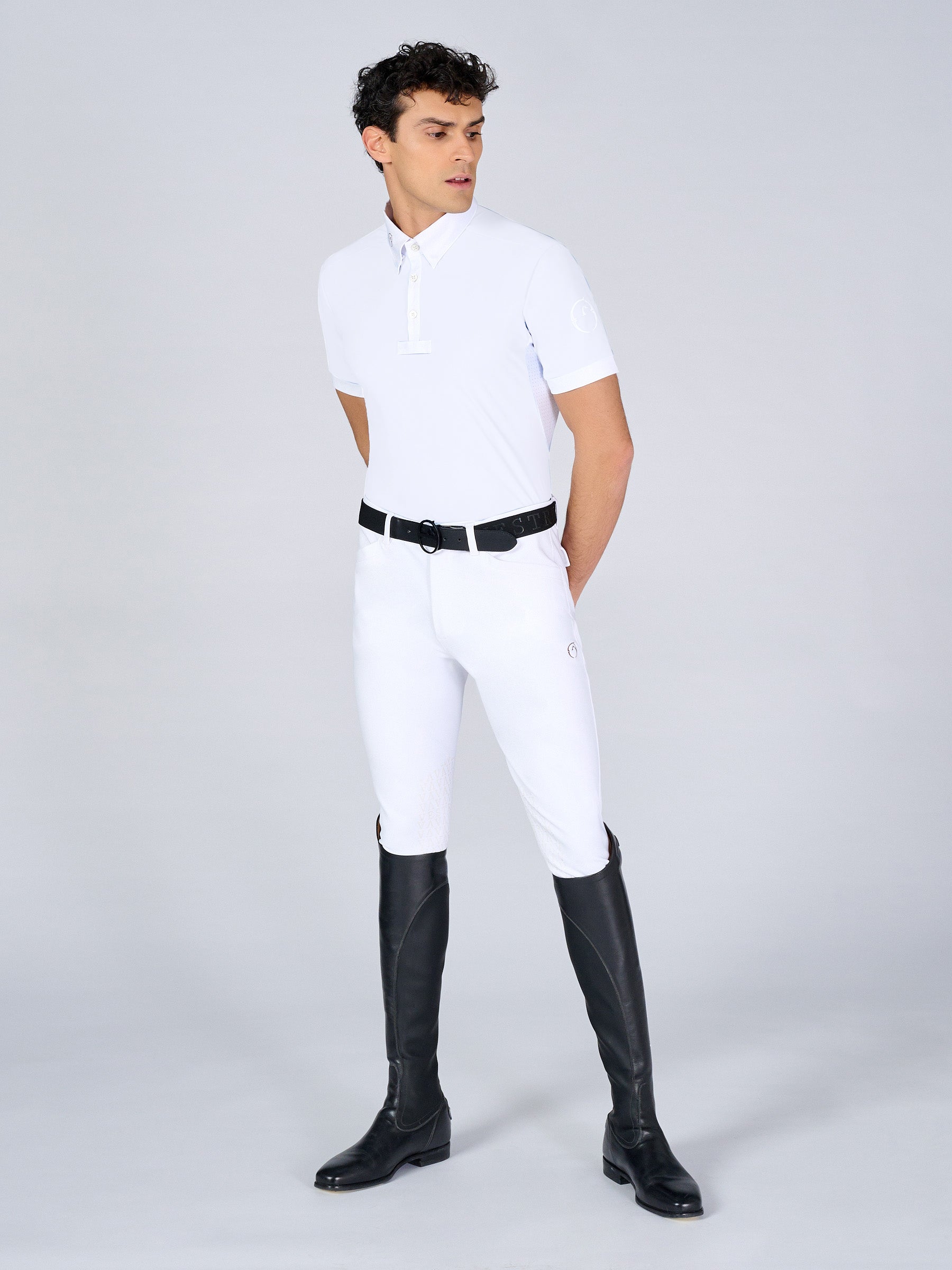 Budoni is a men's show shirt, of highest technical standard. Because of this finest quality it doesn't need ironing, resists water and dries fast. Strong and resistant, yet transpirant, it has 3 buttons on the chest. Elegant and comfortable, Budoni is the perfect short sleeve shirt for a ride.