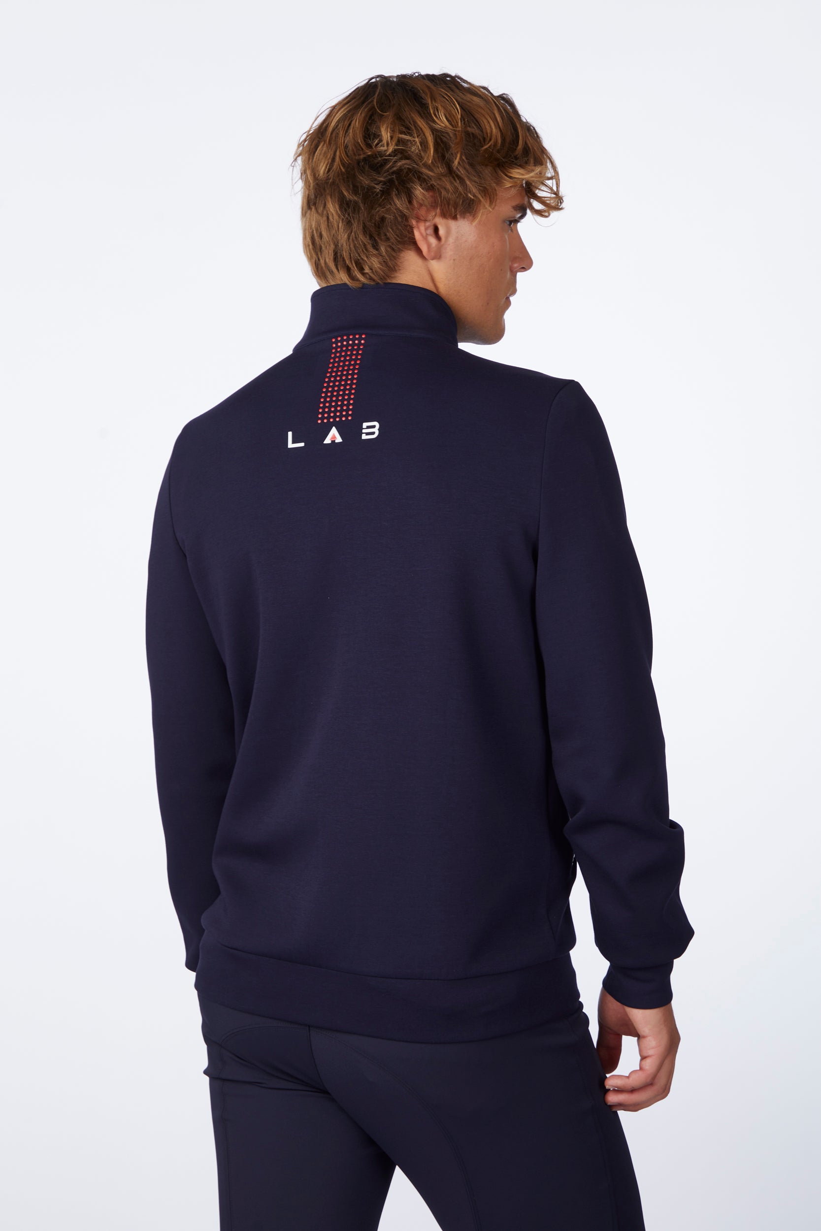 Caph men's zip-up sweatshirt in soft, durable cotton, ideal for leisure and stable life. The garment features side pockets with zips and the Vestrum logo applied by transfer on the left sleeve. On the back, the Vestrum lettering with a dotted design adds a modern and dynamic touch. Comfort and practicality come together in an essential garment with a contemporary equestrian style.
