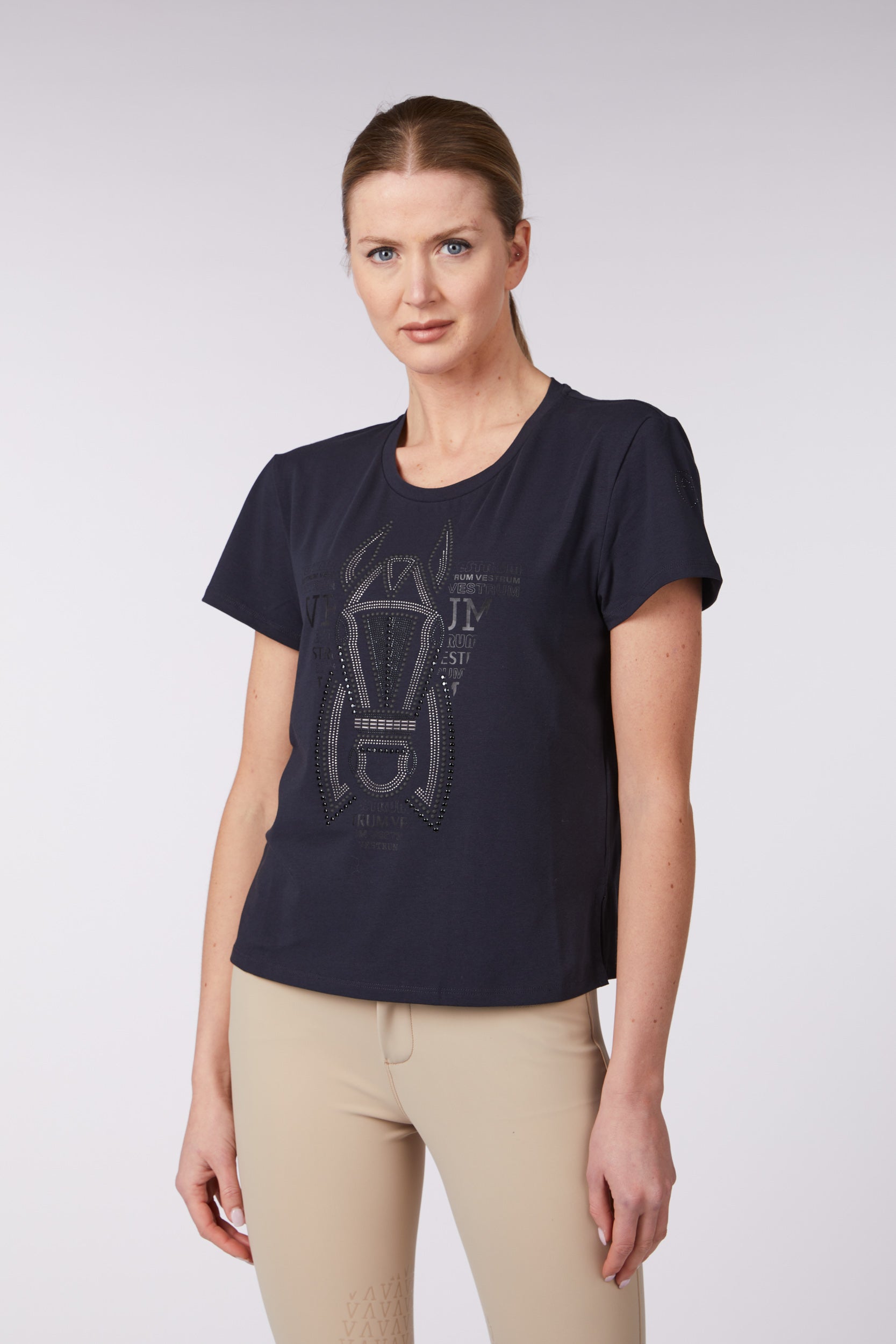 Women's t-shirt printed with equestrian and V design by Vestrum.