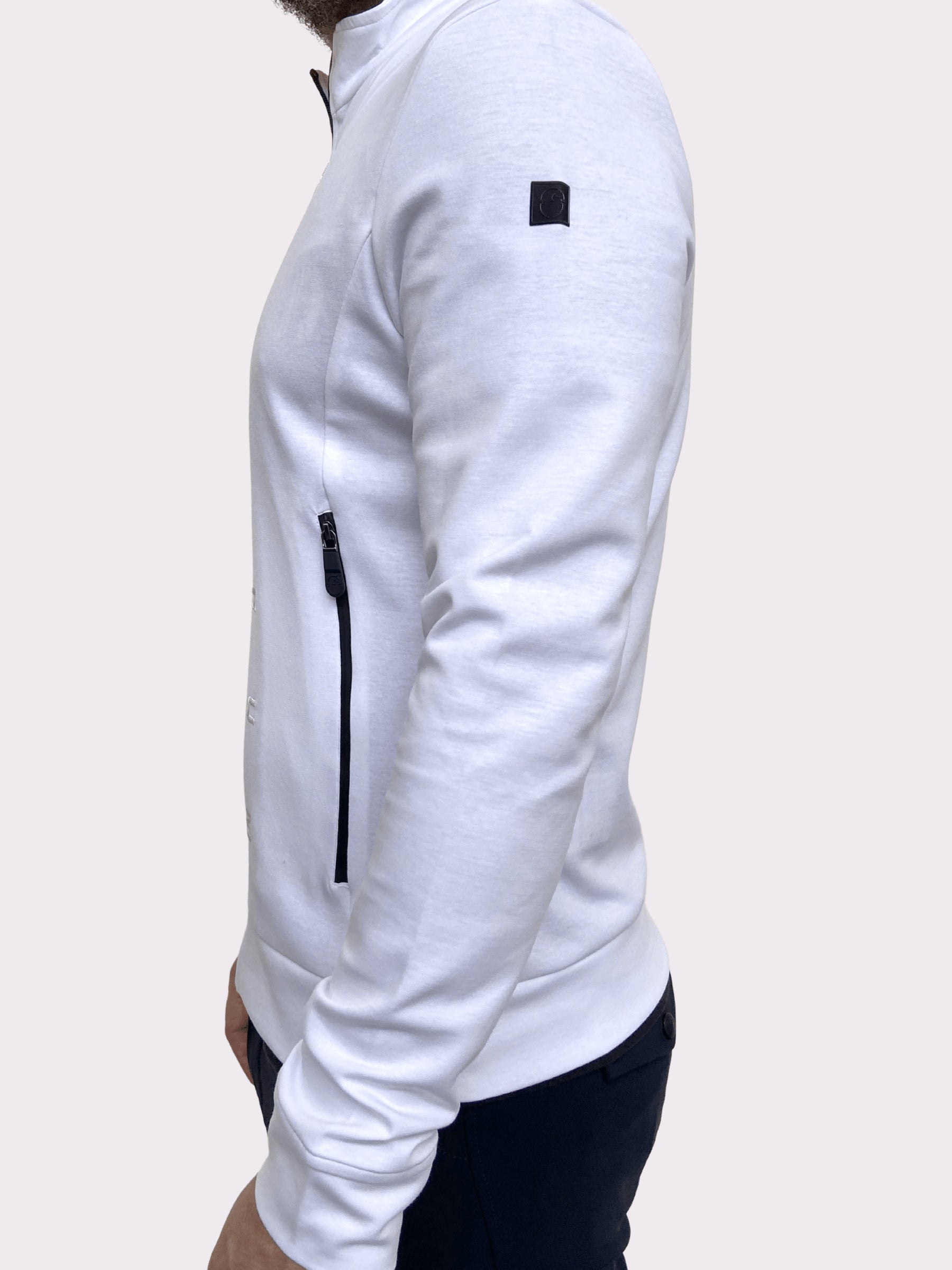 The Grosseto men's technical sweatshirt is made from bielastic fabric. Soft and lightweight feel with a snug but comfortable fit. Front zippered sweatshirt is accompanied by lettering tone embroidery.