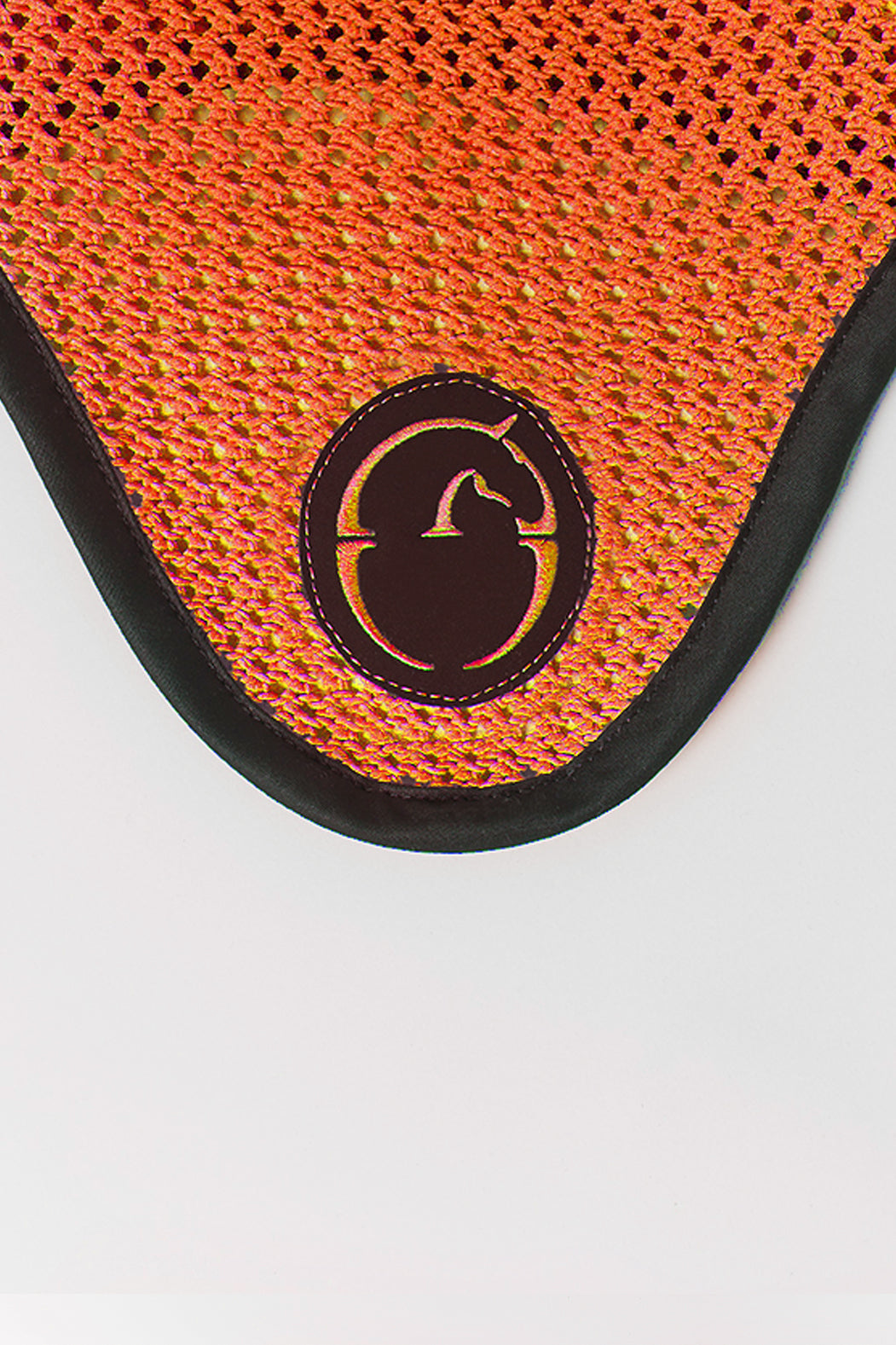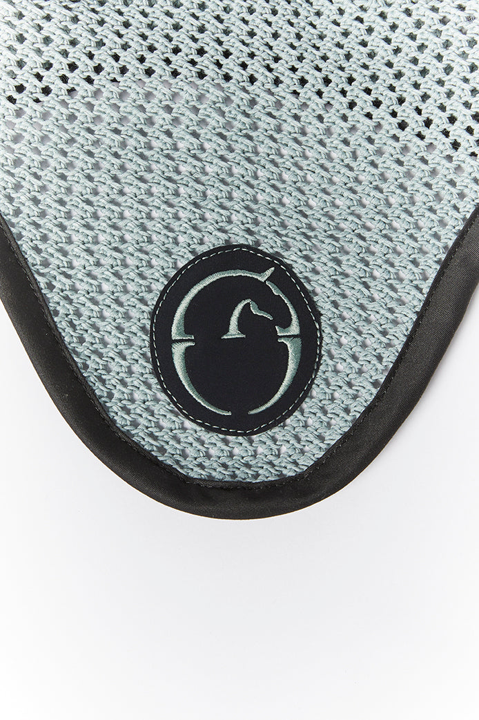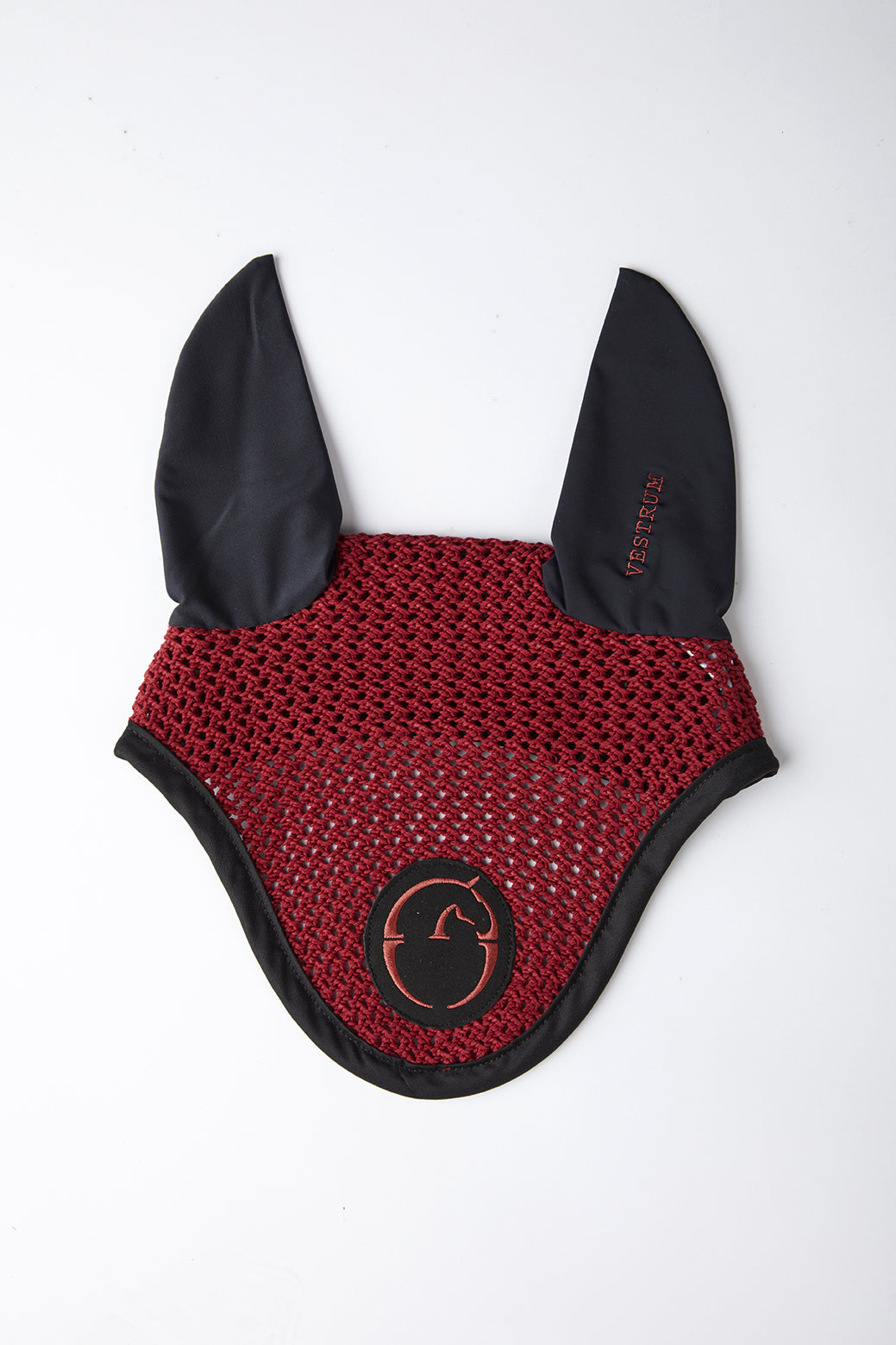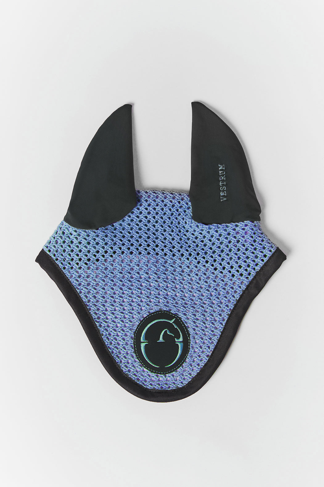 Hand crocheted bonnet in cotton. Made of comfortable and breathable cotton, ears made of bielastic fabric. Vestrum logo on the front and edged edge. Keeps insects out and reduces noise.
