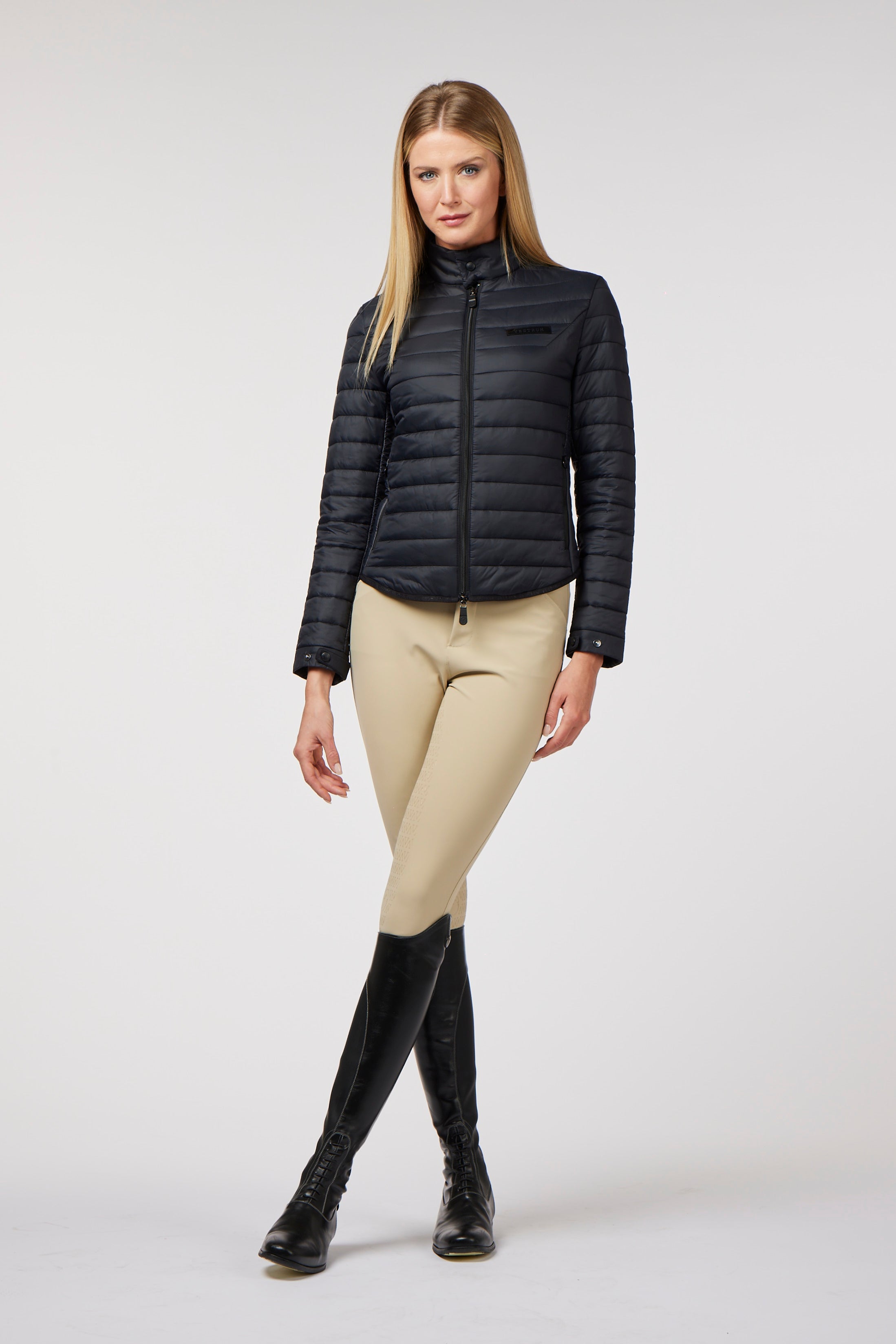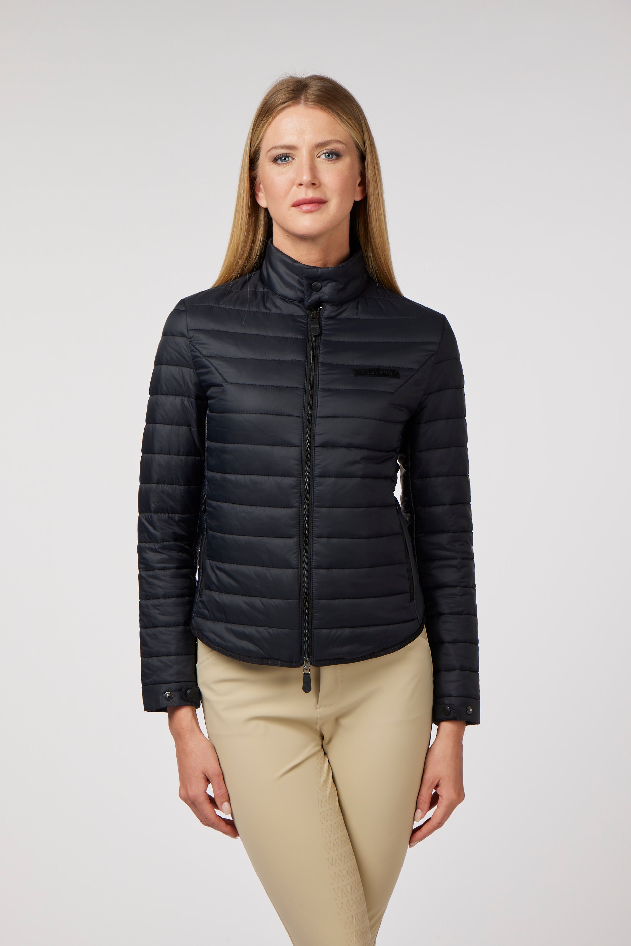 Jesolo is a lightweight padded ecodown jacket for women with a mandarin collar made of water-repellent and windproof fabric. The jacket features a stitched label on the front with Vestrum lettering and a Vestrum logo print on the back.