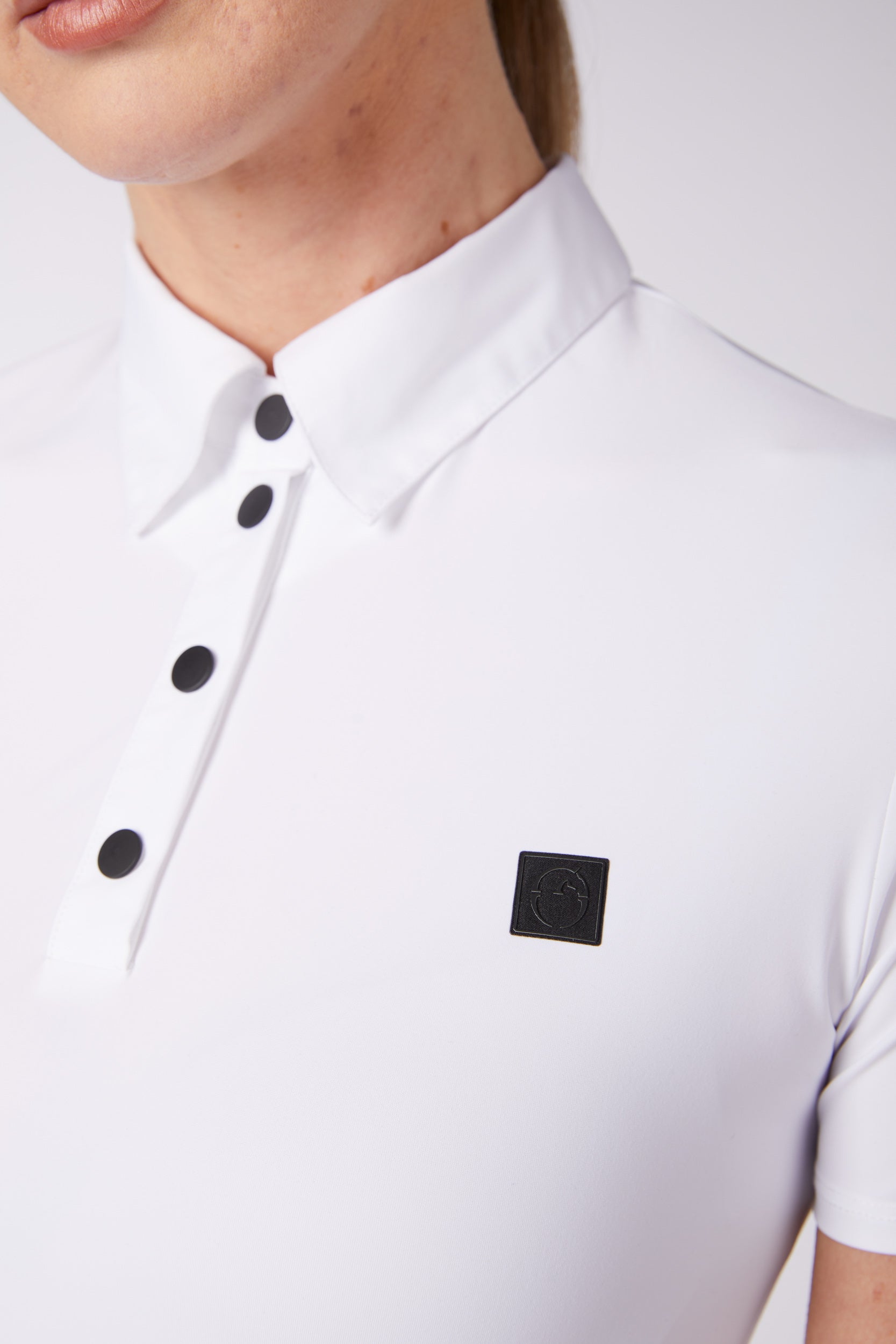 The Mattinata women's training top is designed for all-weather training with the best comfort. Lightweight and breathable bistretch materials, comfortable fit. Snap buttons and Vestrum patch front on center.