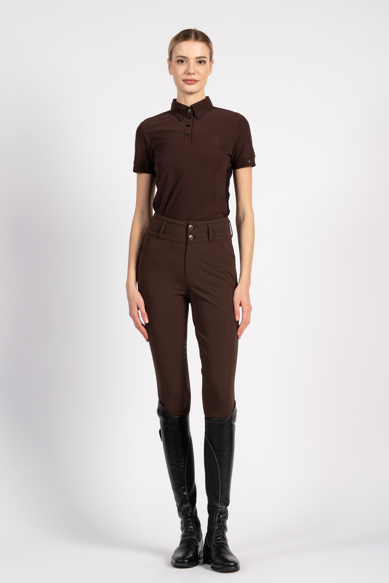 High-waisted knee-high grip breeches made of TK fabric, a lightweight bi-elastic material designed to offer excellent performance and support the athletes' performance at all times. TK fabric ensures greater comfort of movement.