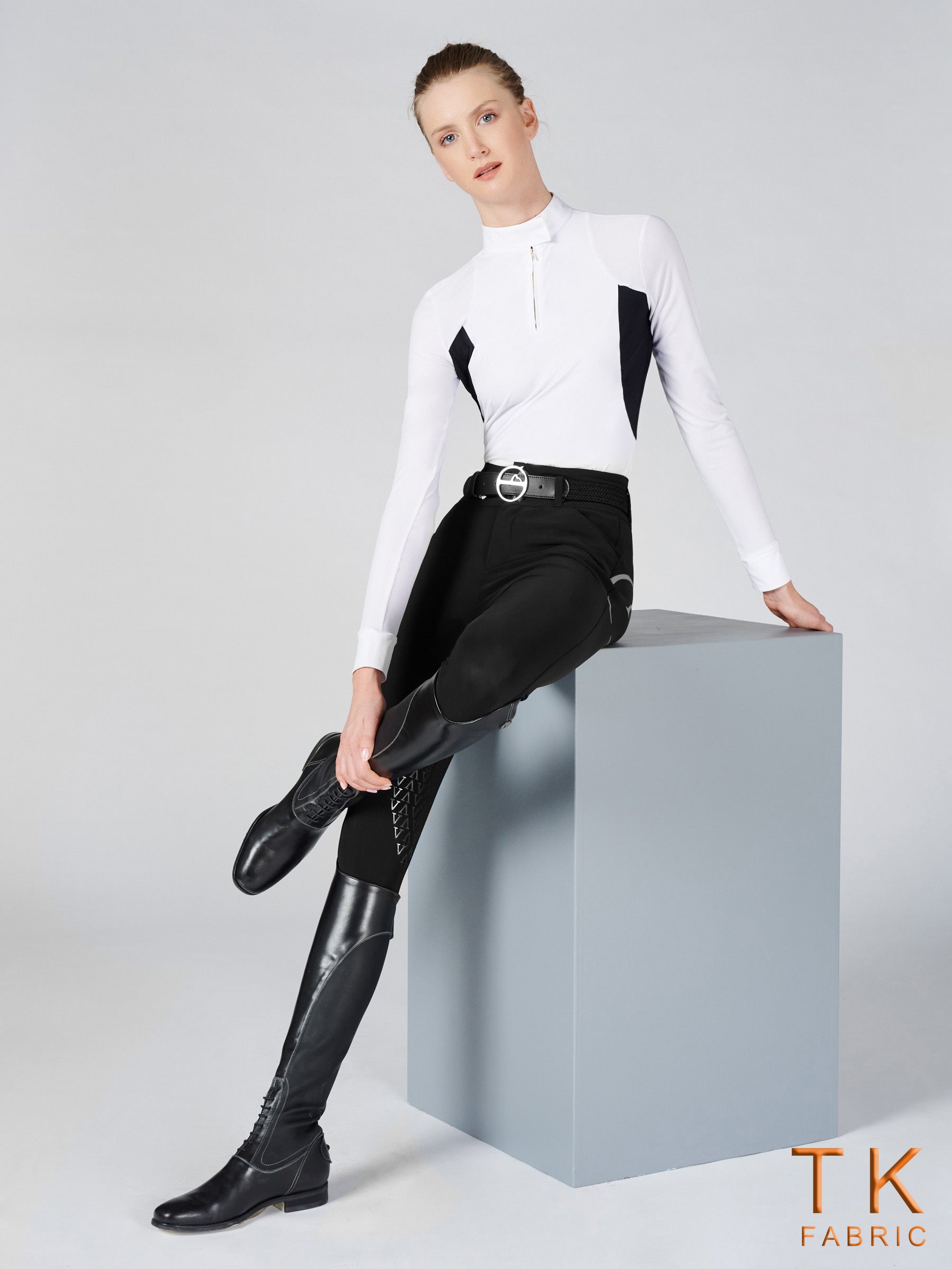 Women's riding trousers with knee grip made of TK fabric, a lightweight bi-elastic fabric designed to offer excellent performance and ensure greater comfort in movement. The fit is regular. The breeches feature a Vestrum print on the side.