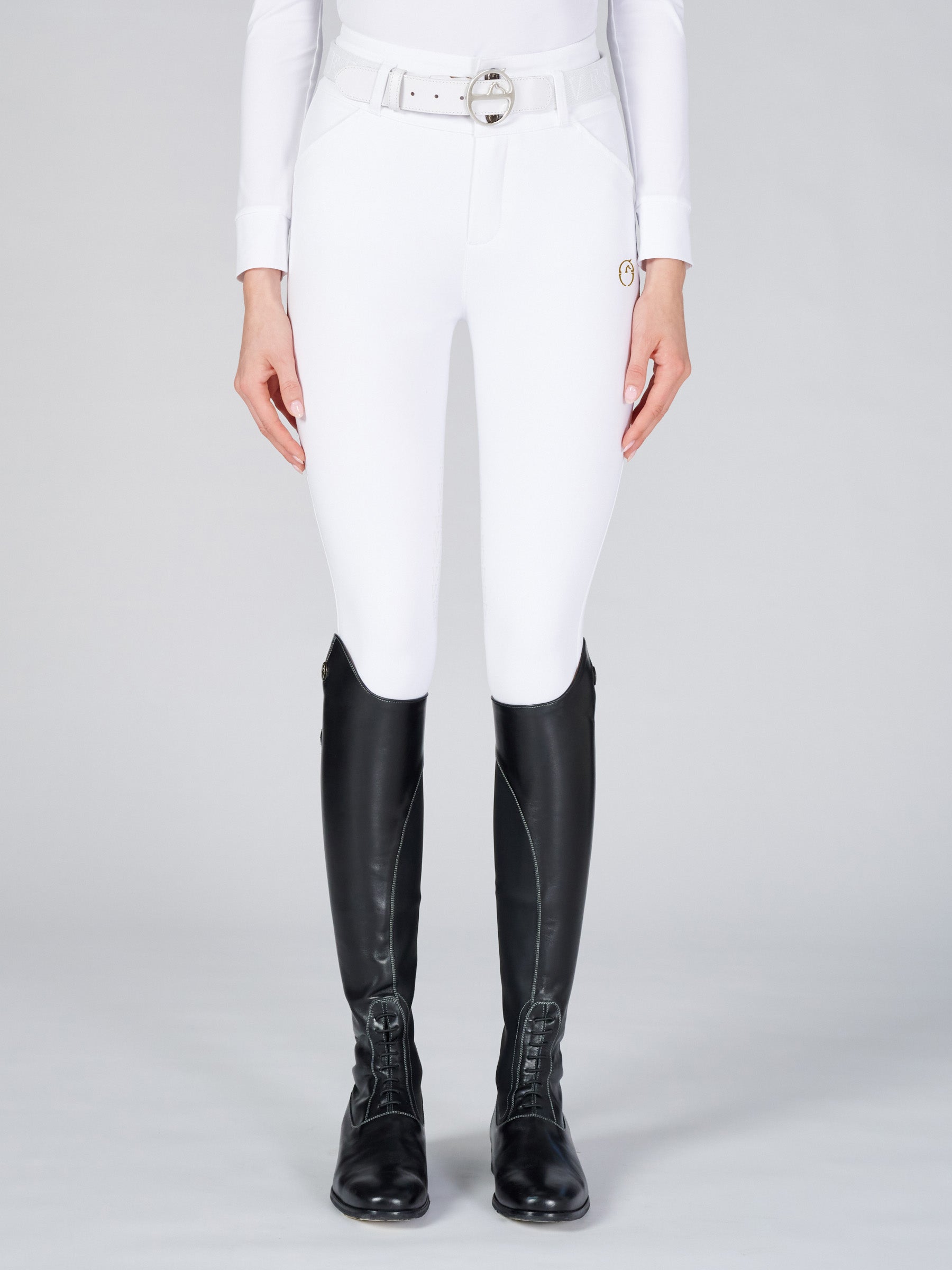 High-waisted knee-high grip breeches made of TK fabric, a lightweight bi-elastic material designed to offer excellent performance and support the athletes' performance at all times. TK fabric ensures greater comfort of movement.
