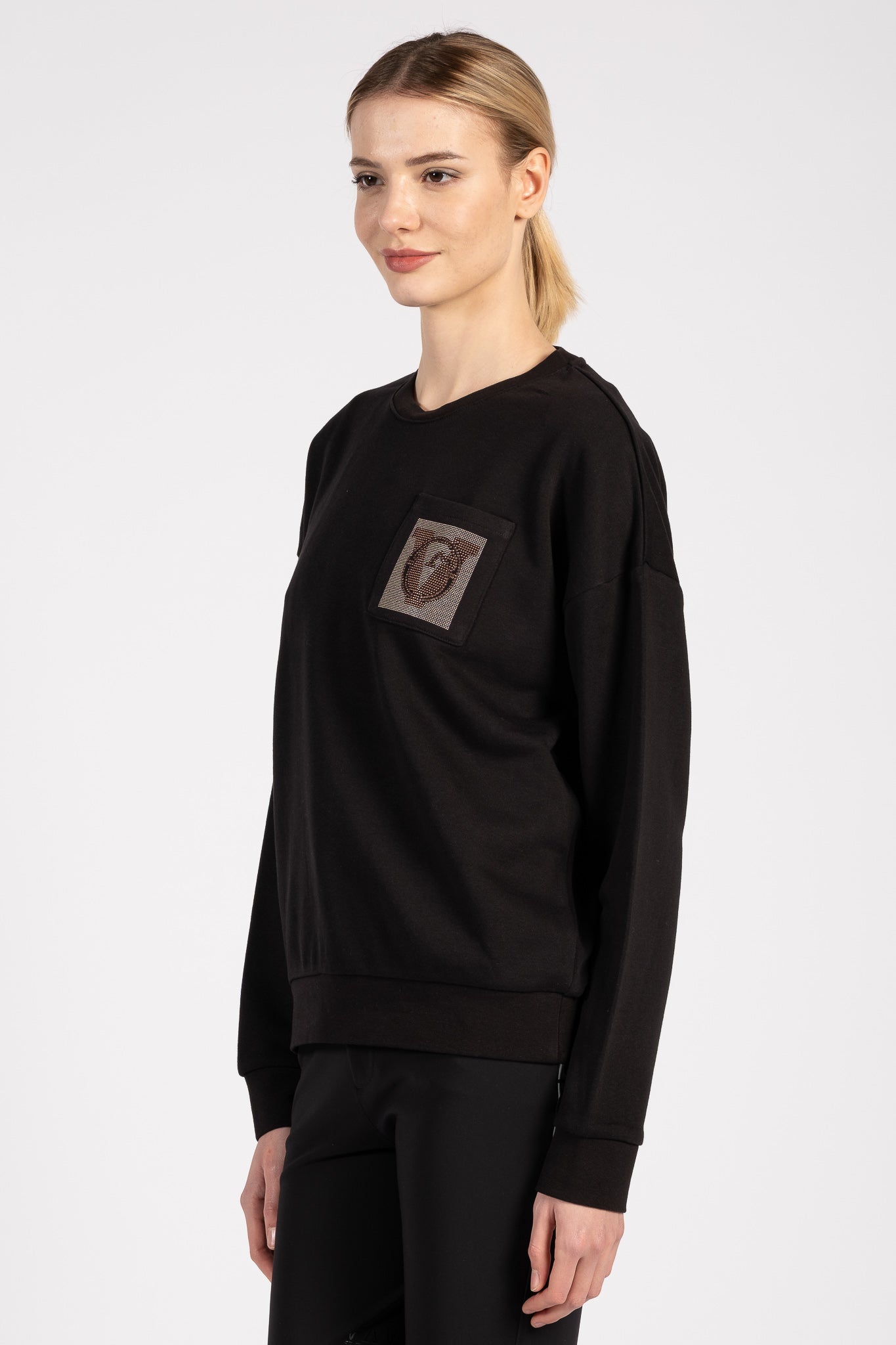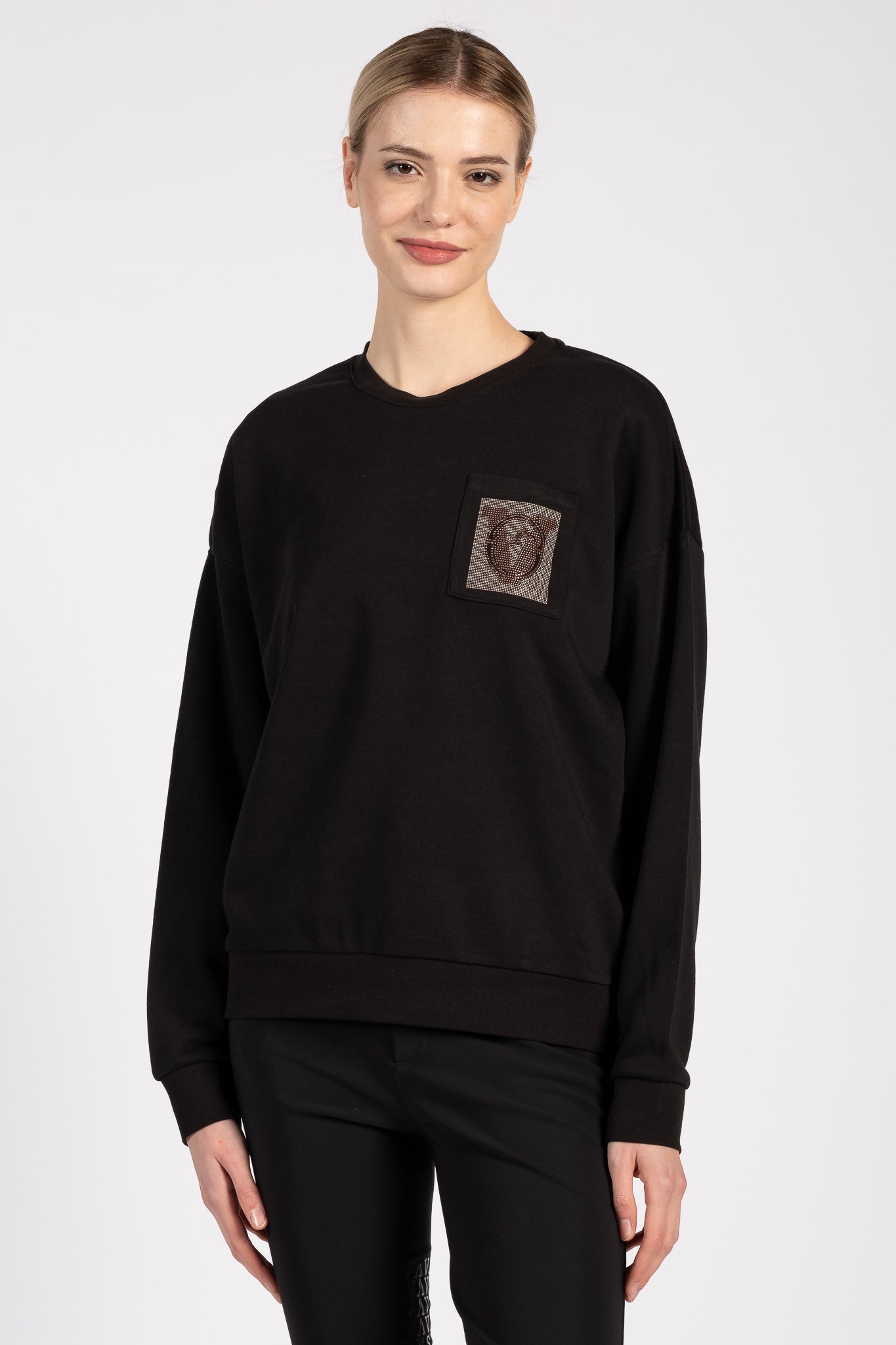 The Nivelles women's sweatshirt is designed to move naturally with you, thanks to its oversized cut and dropped sleeves that provide a comfortable fit. Made from soft cotton, the Nivelles sweatshirt ensures comfort during everyday activities at the stables as well as in your free time. On the front, the micro studs are not only a decorative element but also form the Vestrum logo, giving the sweatshirt a refined and recognisable style.