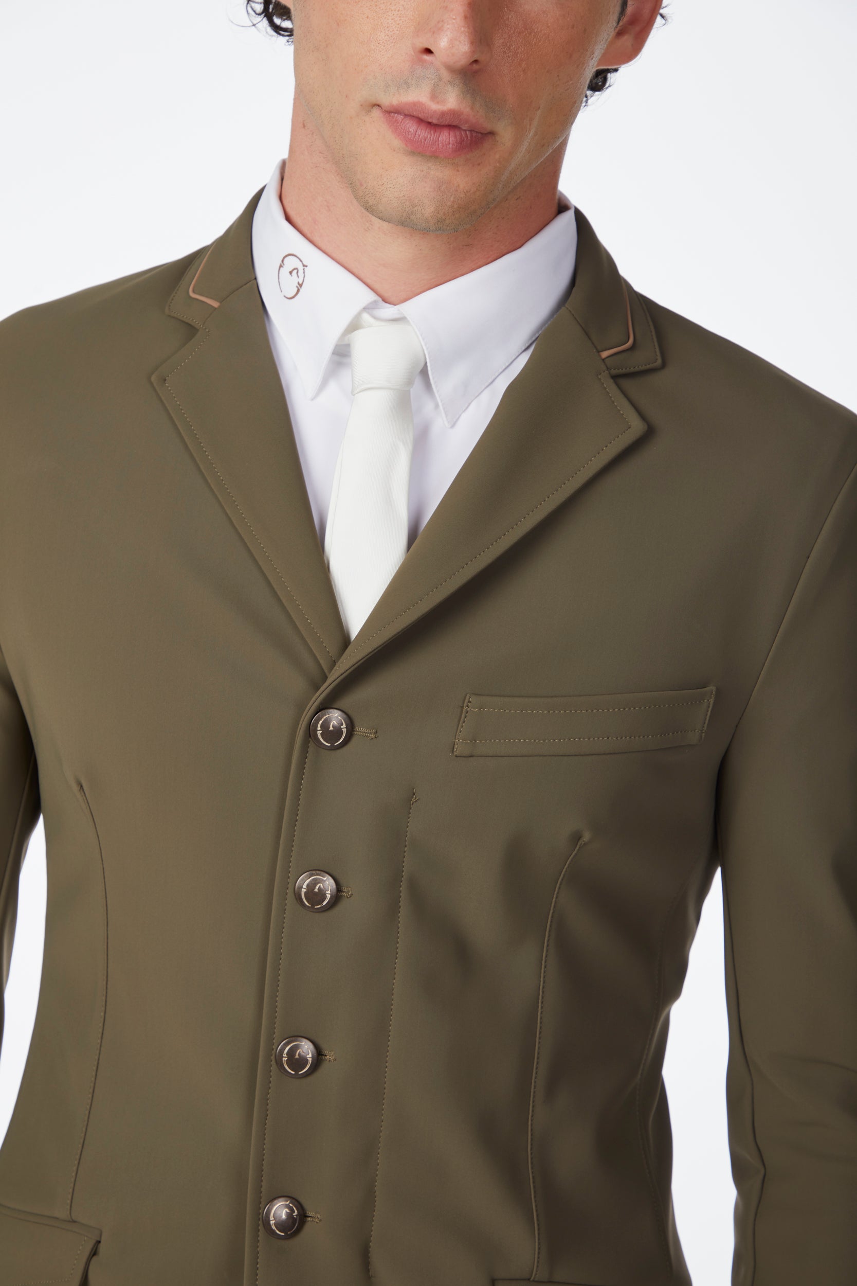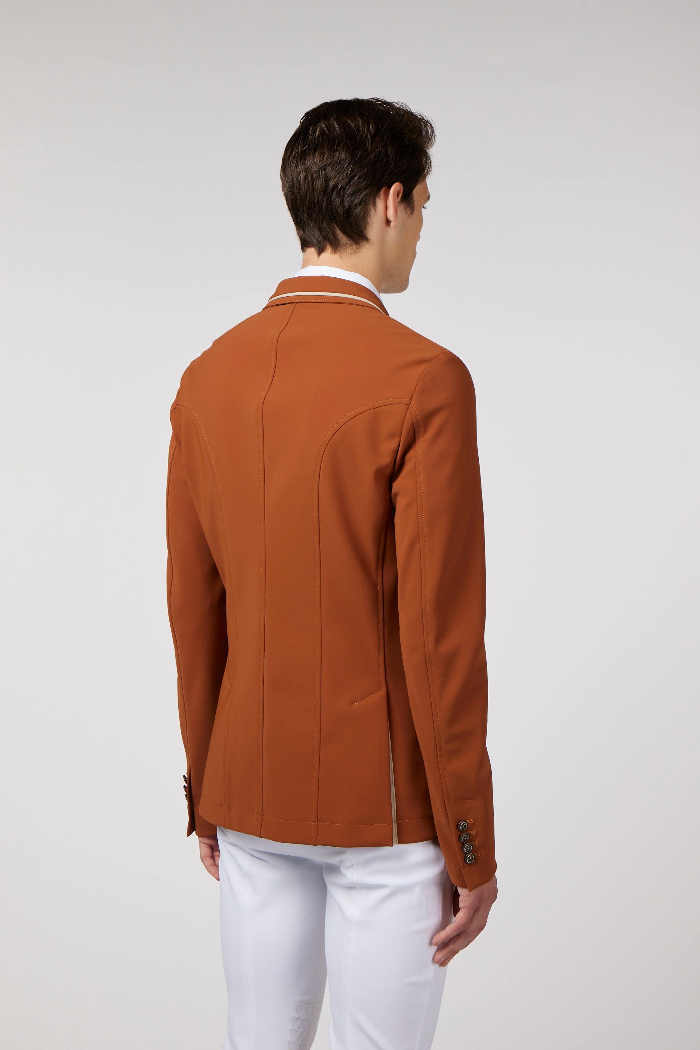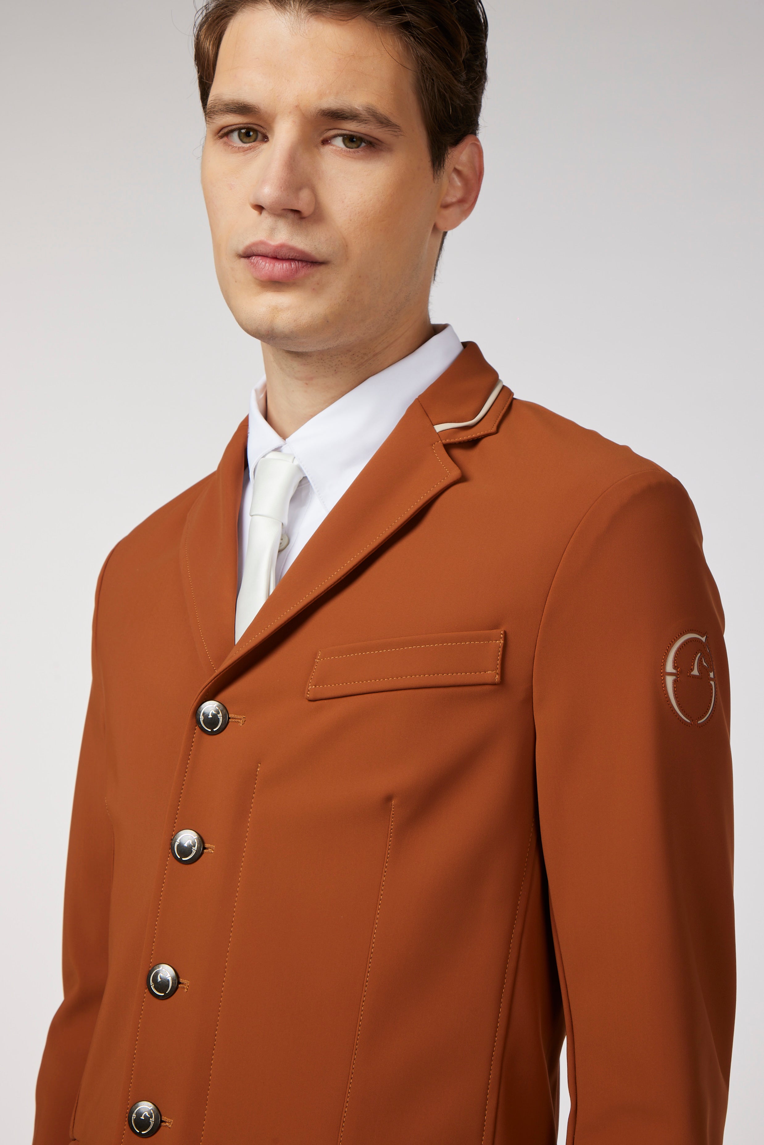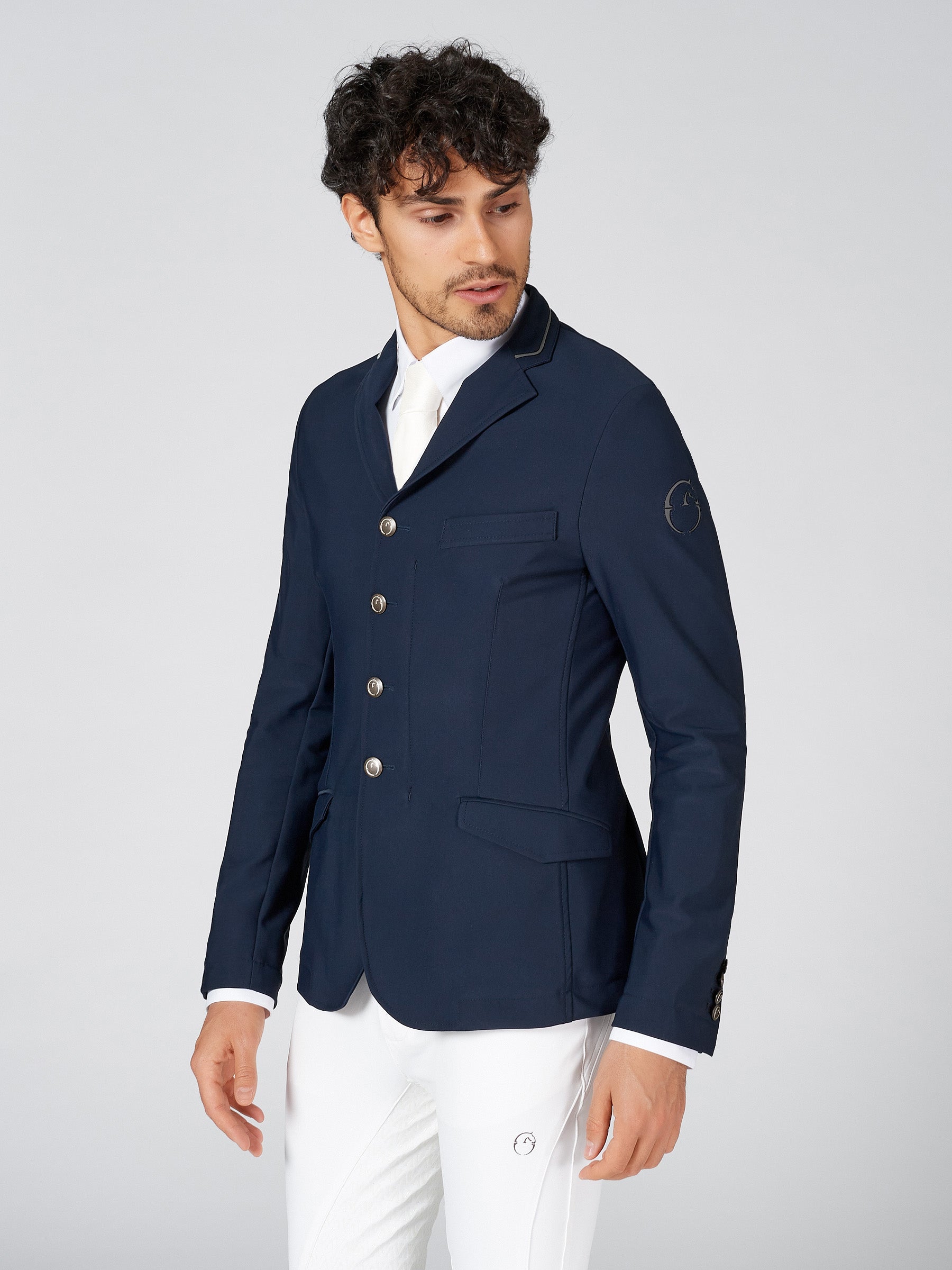 Unlined men's show jacket, Phoenix is a high-end classic one. Its strong bi-stretch knitted fabric makes it pefect for competitions. The bielastic technical fabric guarantees the maximum freedom of movement. Contrast details, personalized rib recalling the Stable's colors. Side pockets and laser logo on shoulder. Phoenix jacket is compatible with Free Jump Airbag System.