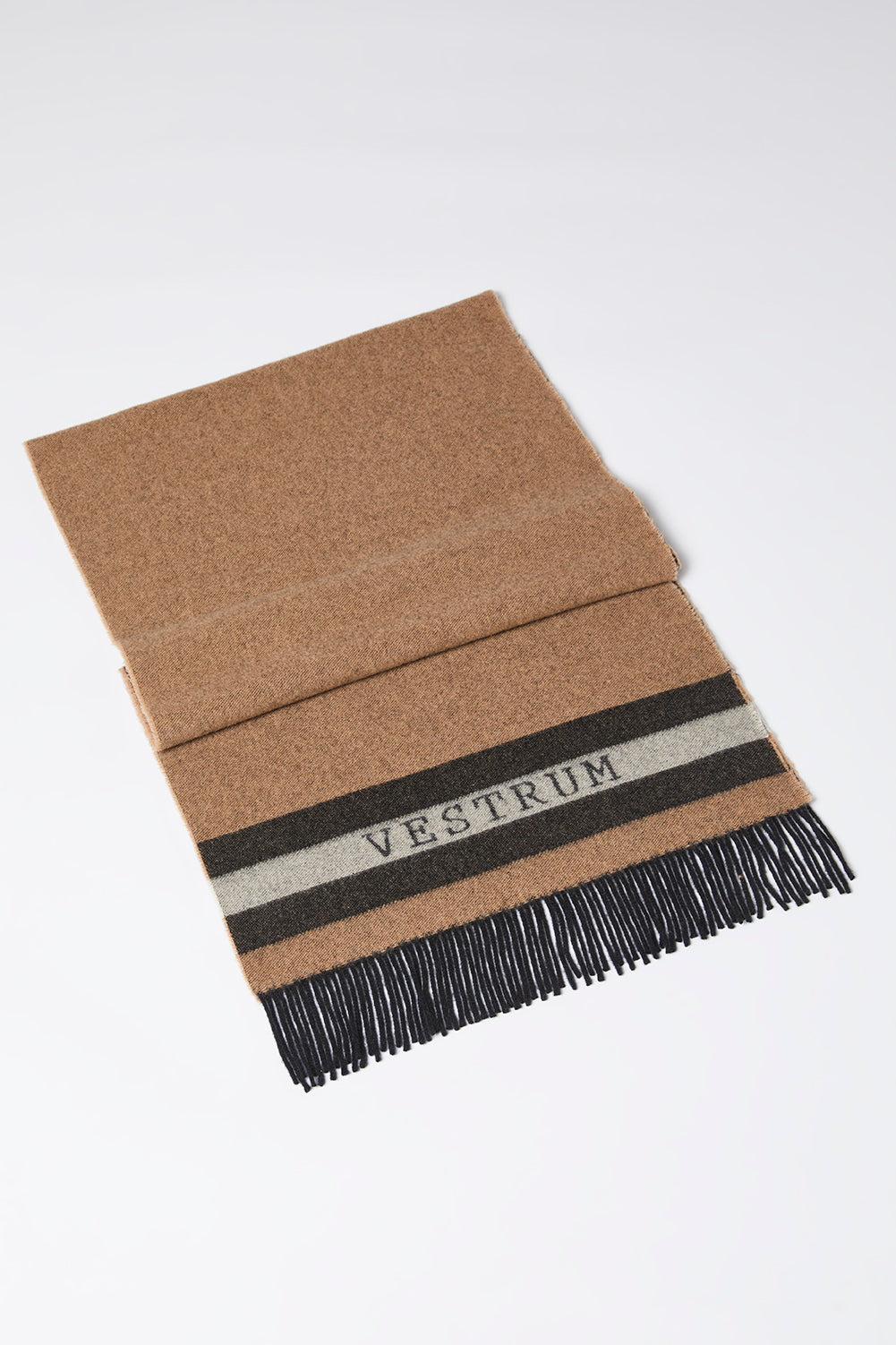 Soft and precious, the scarf Predaia is characterized by fringed edge. The Vestrum logo and lettering are delicately inserted into the jacquard texture of this cashmere scarf in contrasting colours. Ideal for the coldest season.