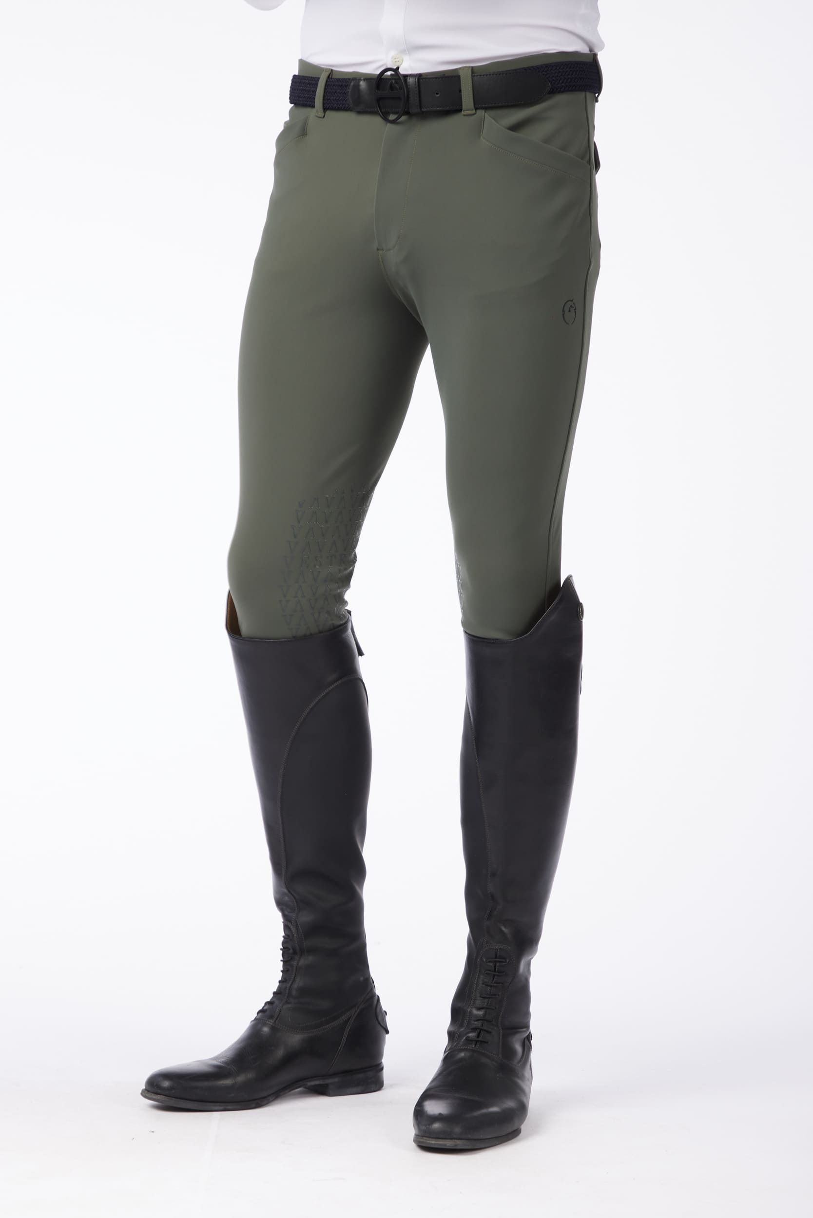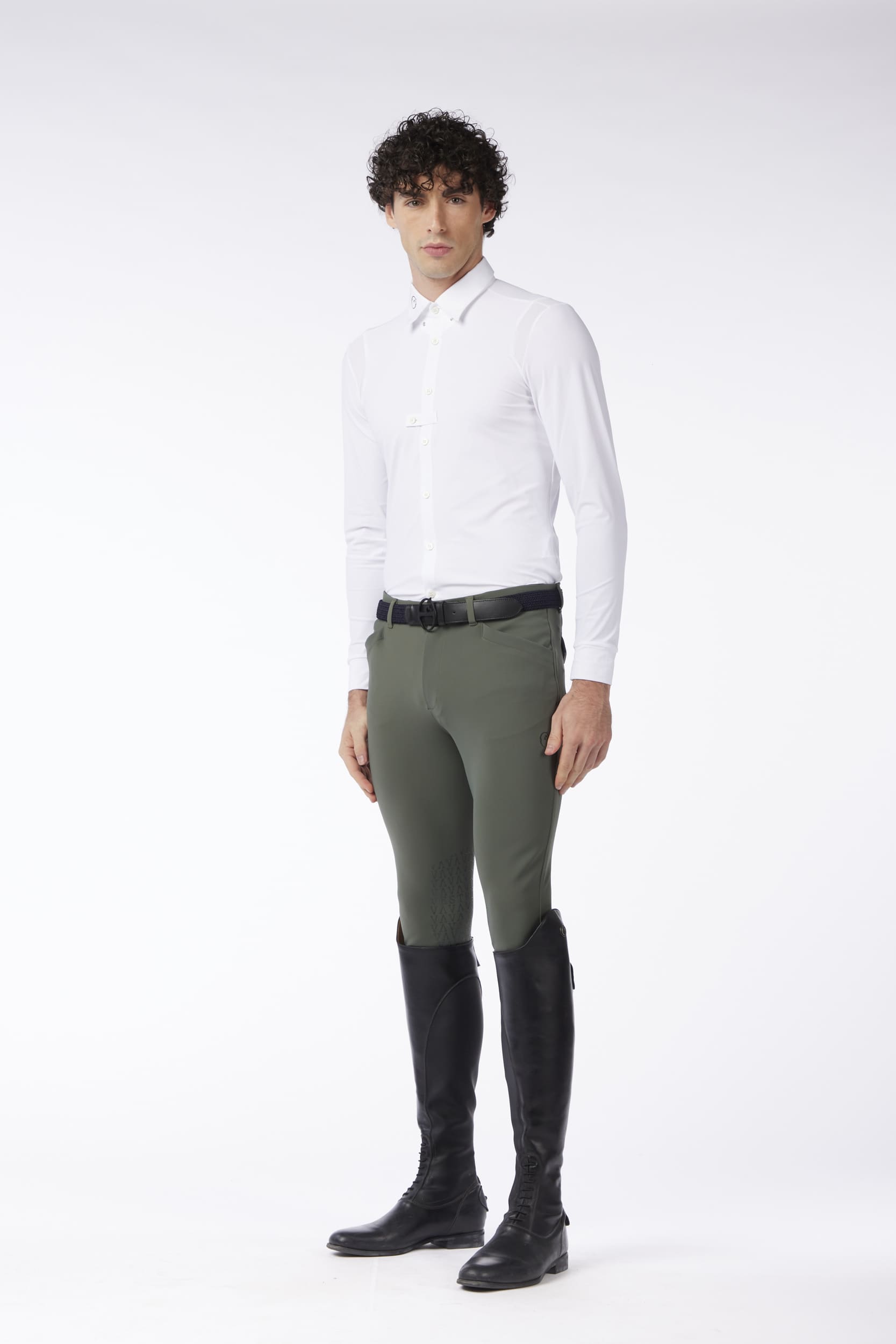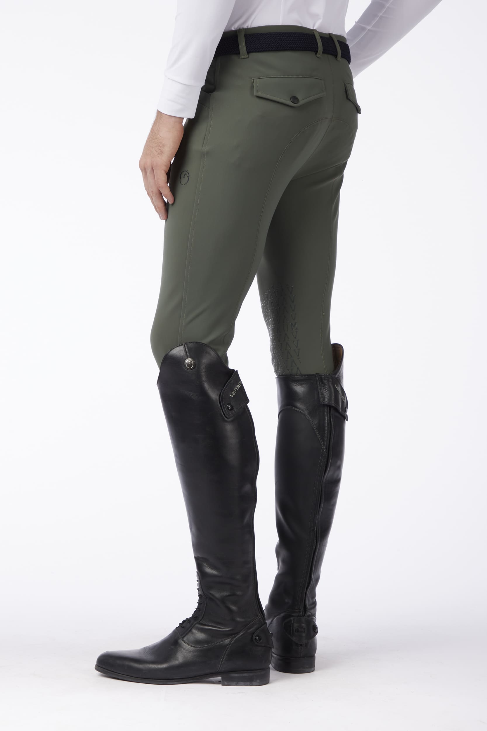 Men's riding breeches, San Diego is a comfort fit breeches with chino pocket, made with our peculiar bi-elastic material guarantees a unique comfort. Knee grip for a safe riding, two back pockets with one personalized press stud fastening.