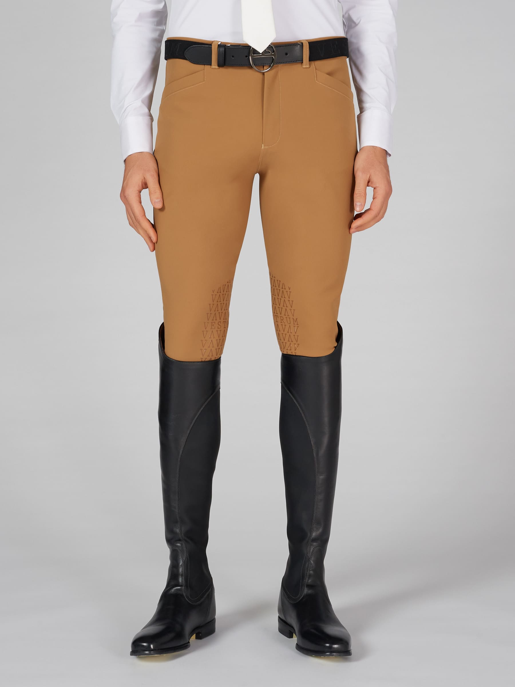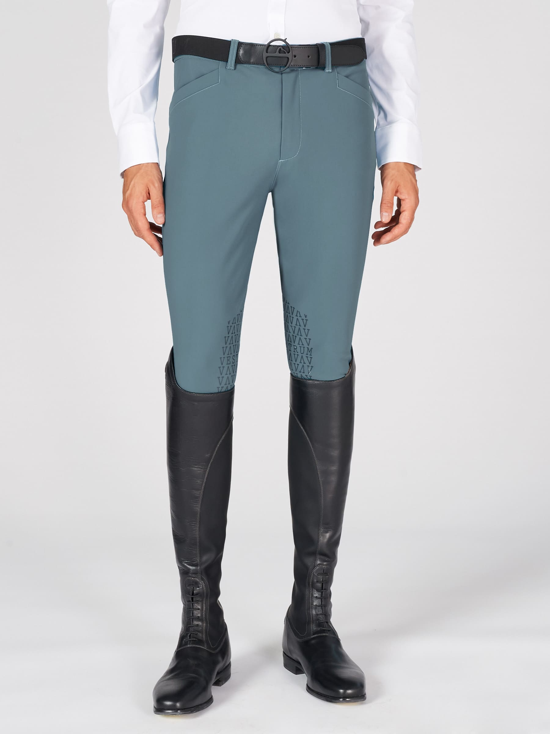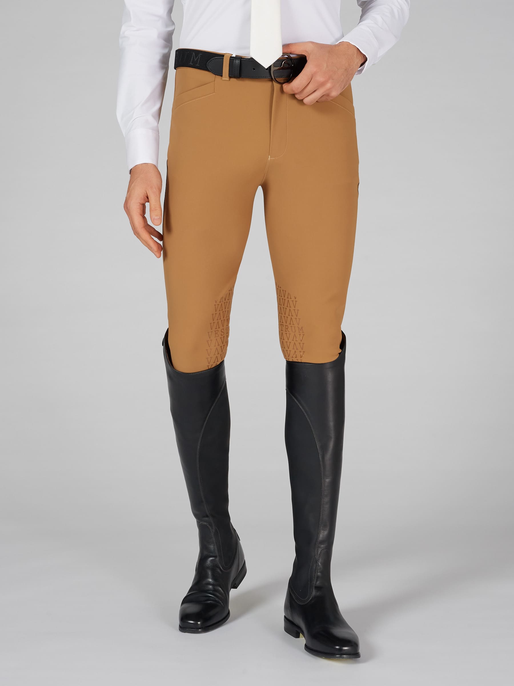 Men's riding breeches, San Diego is a comfort fit breeches with chino pocket, made with our peculiar bi-elastic material guarantees a unique comfort. Knee grip for a safe riding, two back pockets with one personalized press stud fastening.