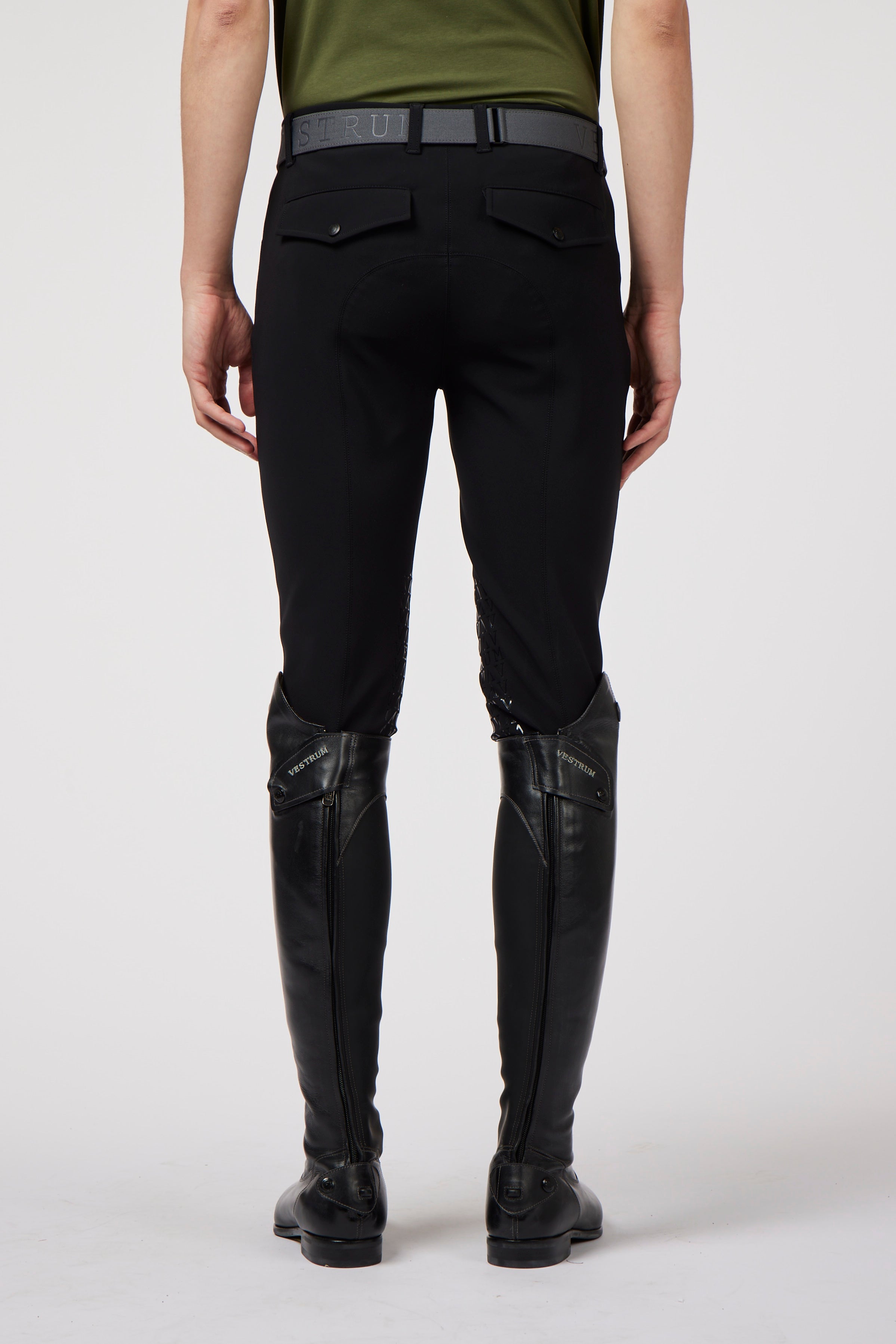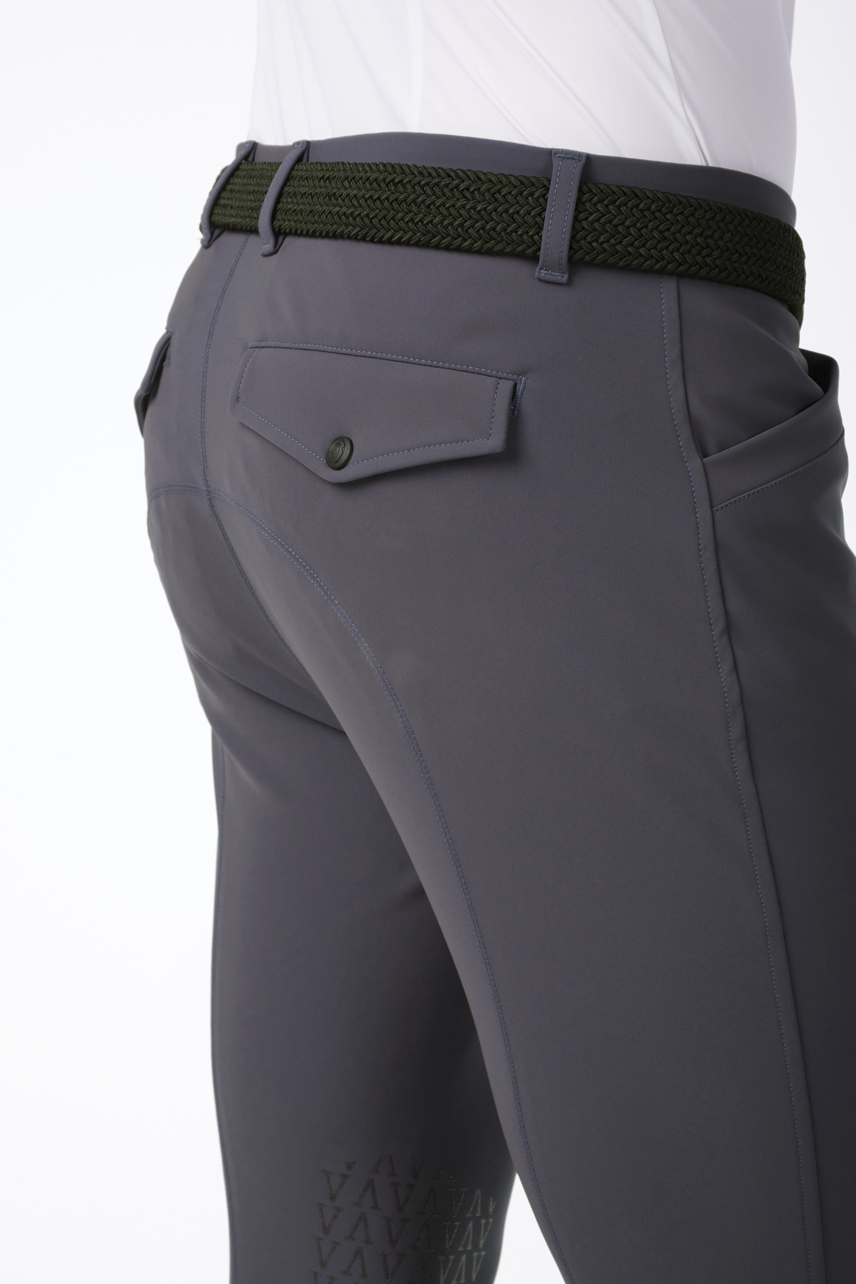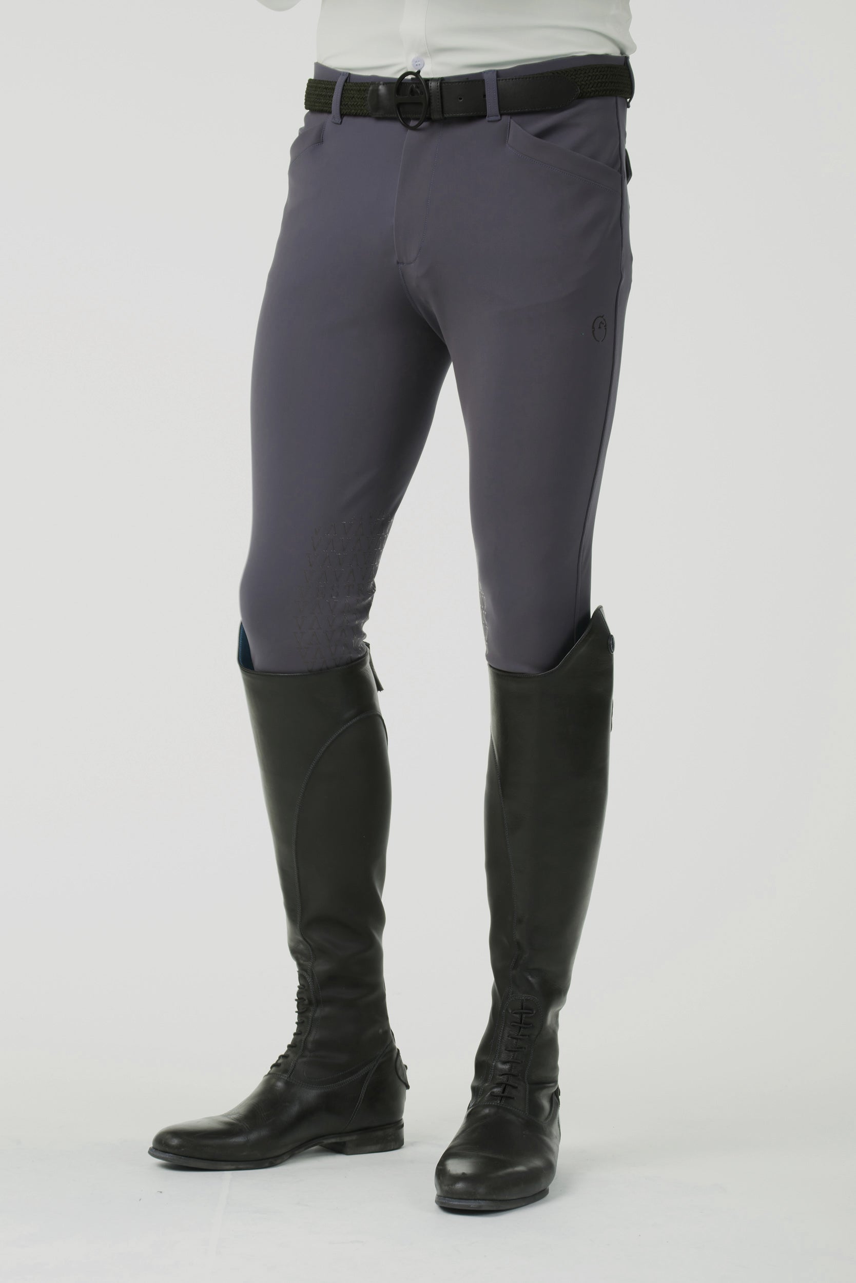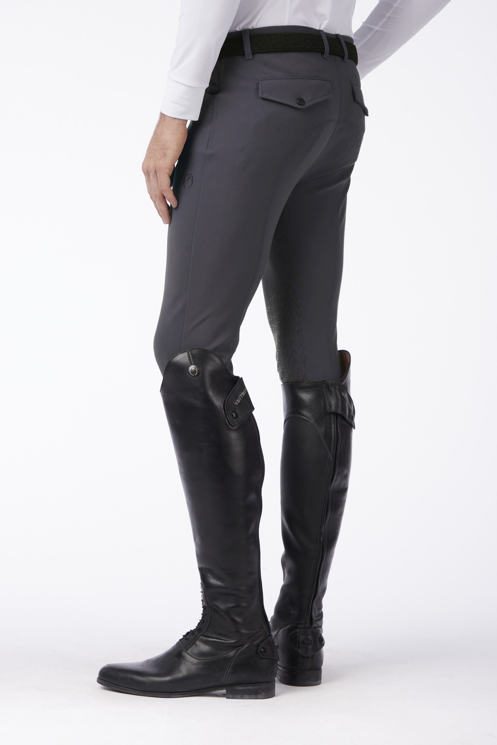 Men's riding breeches, San Diego is a comfort fit breeches made with our peculiar bi-elastic material guarantees a unique comfort. Knee grip for a safe riding, two back pockets with one personalized press stud fastening.