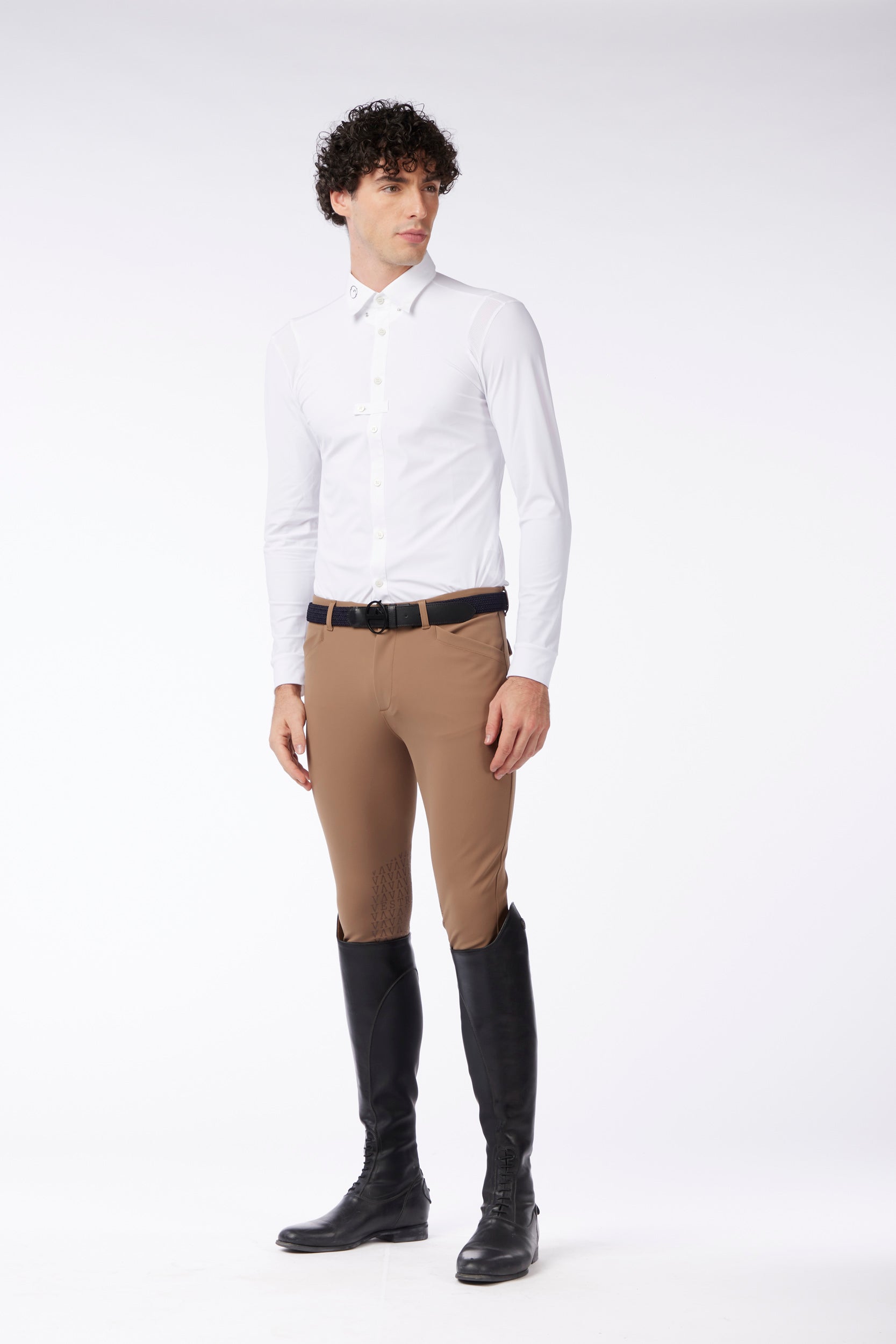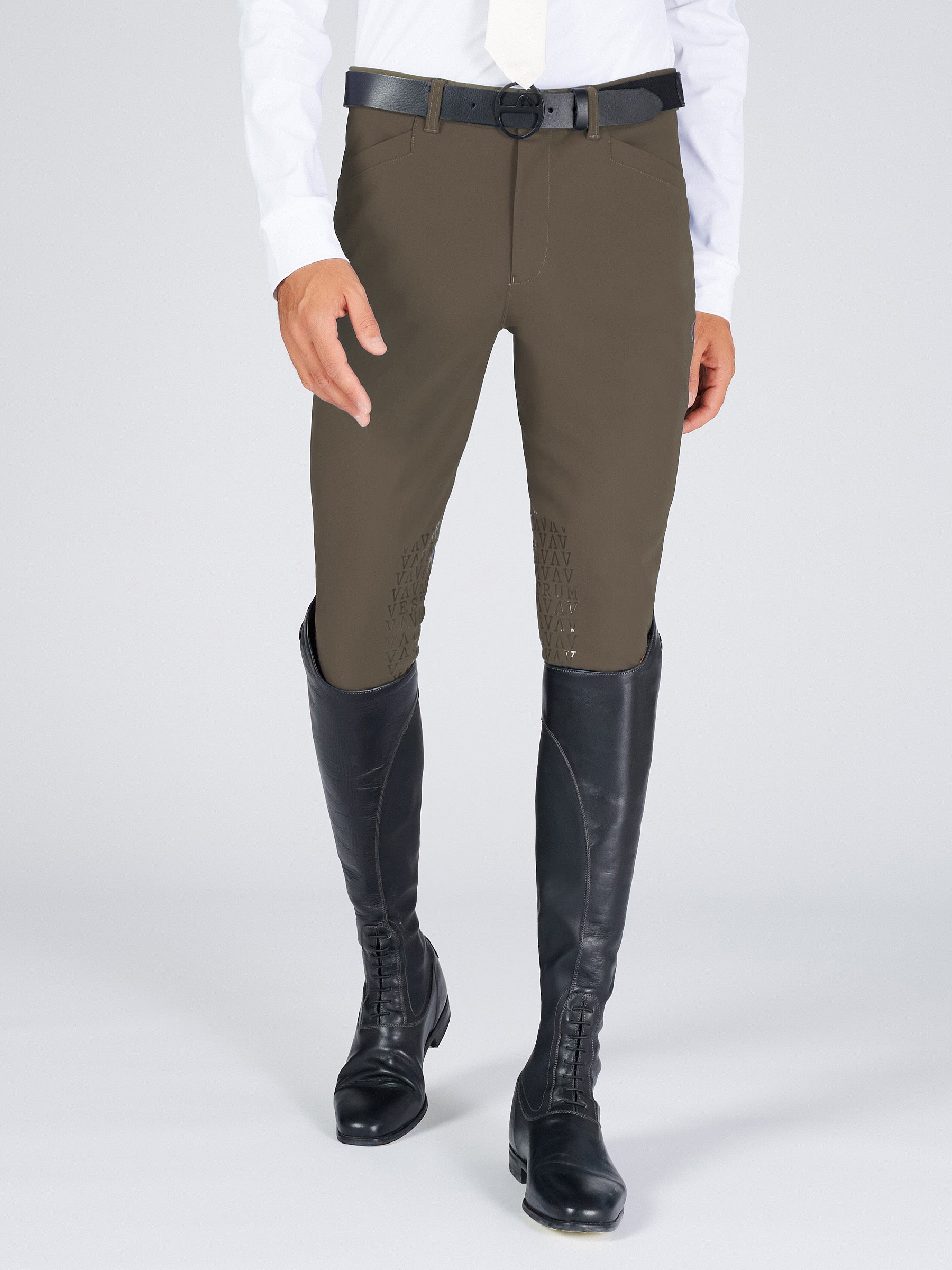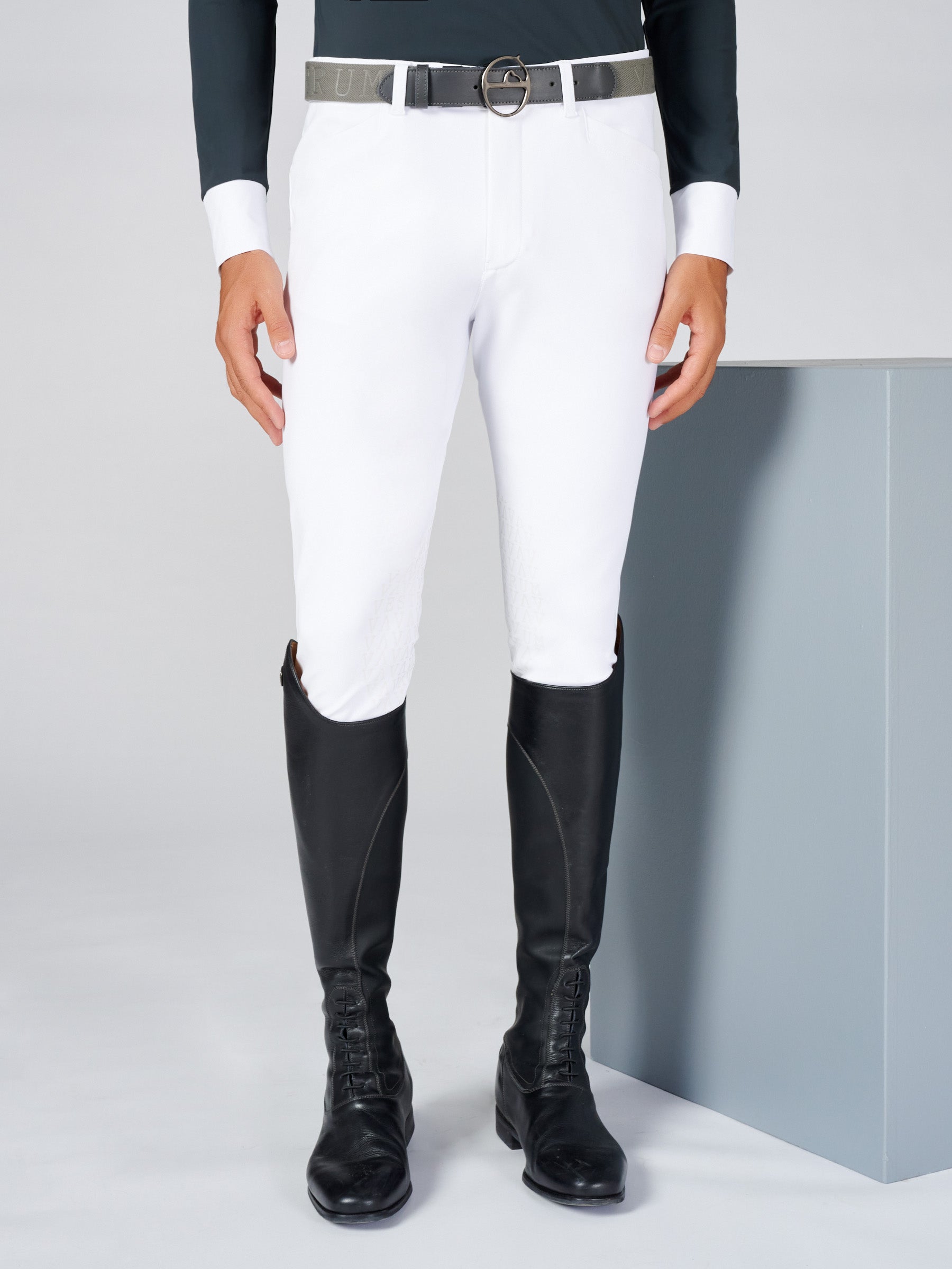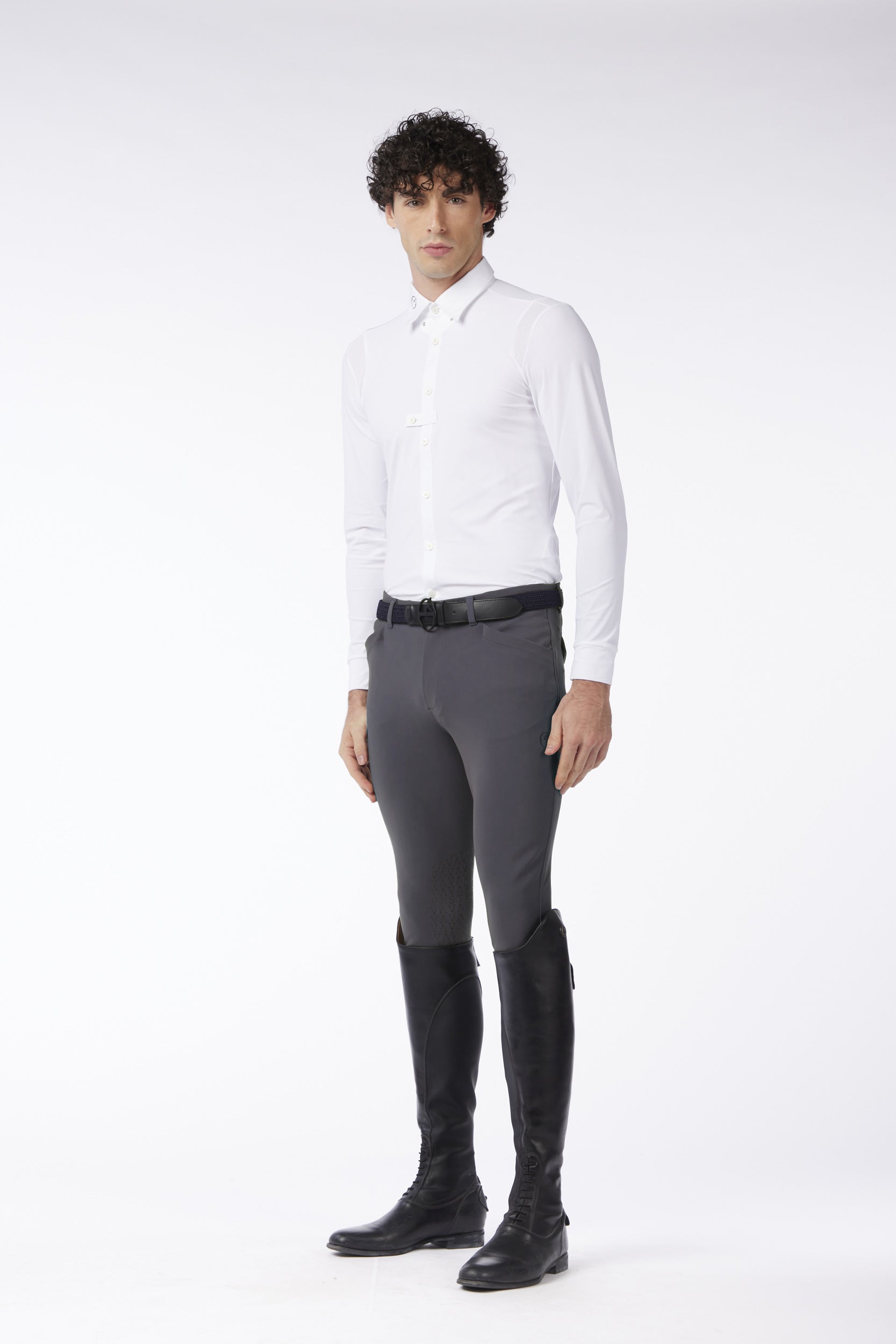 Men's riding breeches, San Diego is a comfort fit breeches made with our peculiar bi-elastic material guarantees a unique comfort. Knee grip for a safe riding, two back pockets with one personalized press stud fastening.