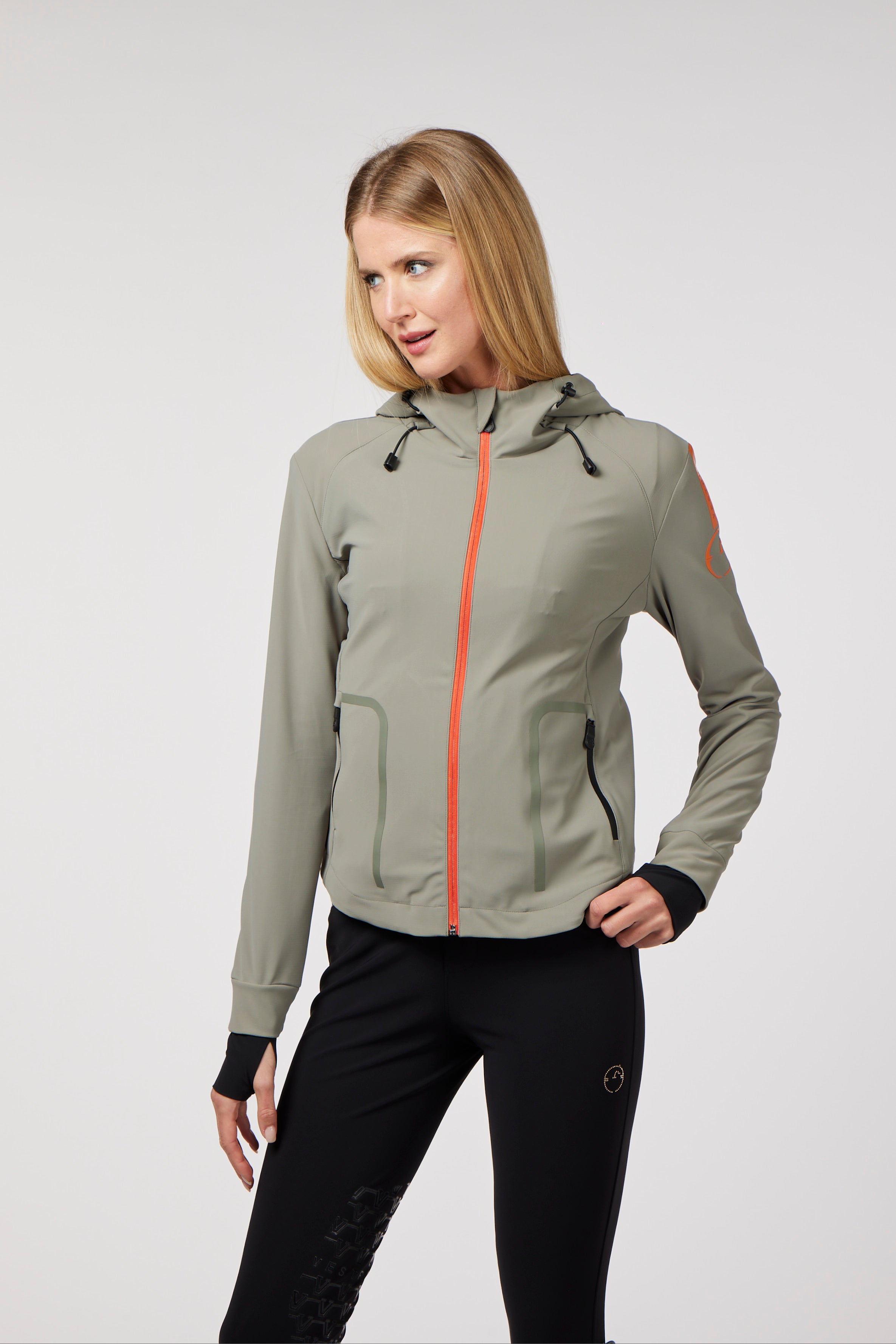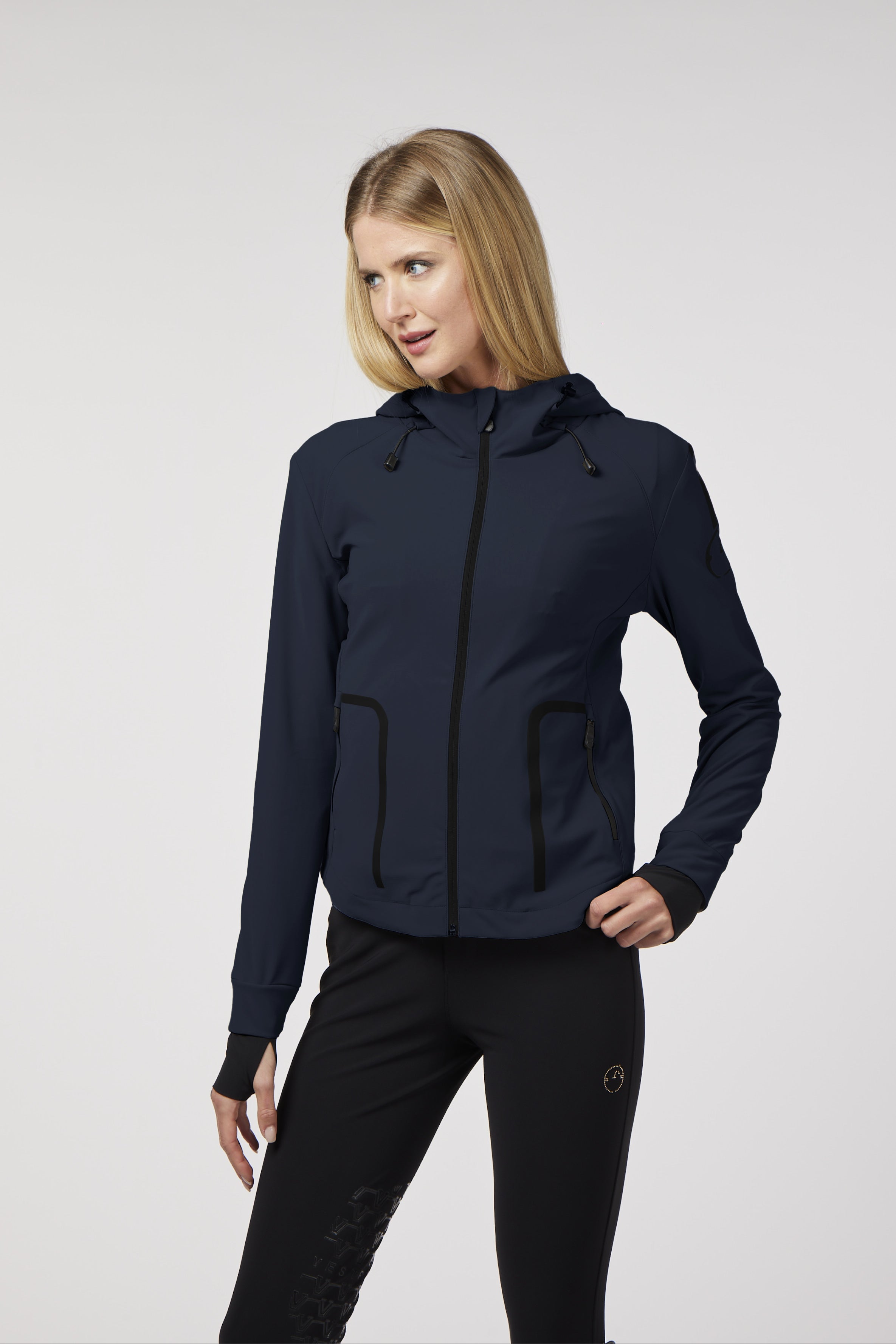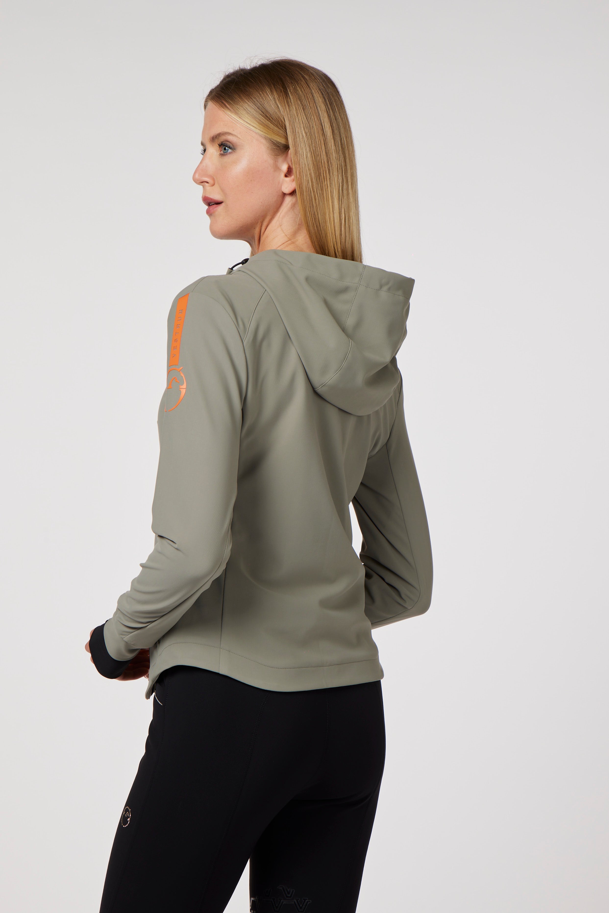 San Remo is a women's hooded, water-repellent softshell. This fabric is very versatile, ideal for wearing as a sweatshirt in the colder months and as a jacket in the mid-seasons. The jacket features personalization around the side pockets and a contrasting Vestrum logo and lettering applique on the left sleeve.