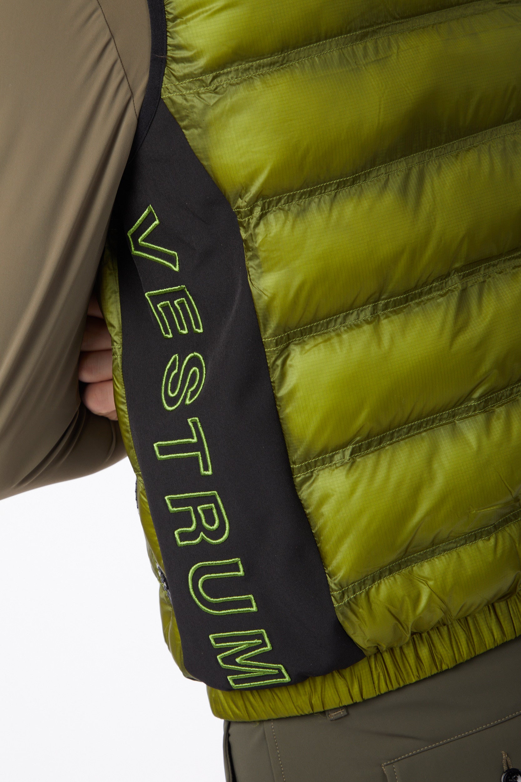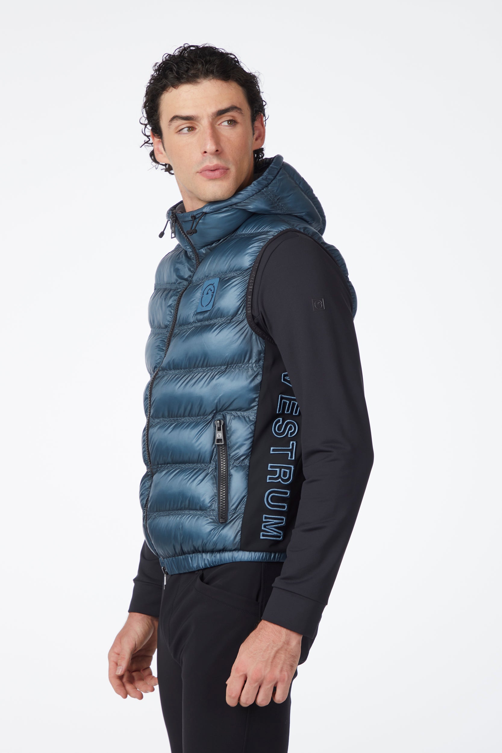 Men's vest in water-repellent and windproof nylon with contrasting sides. Versatile and practical, it is suitable for both training and daily use. The vest is embellished with Vestrum lettering on the left side.