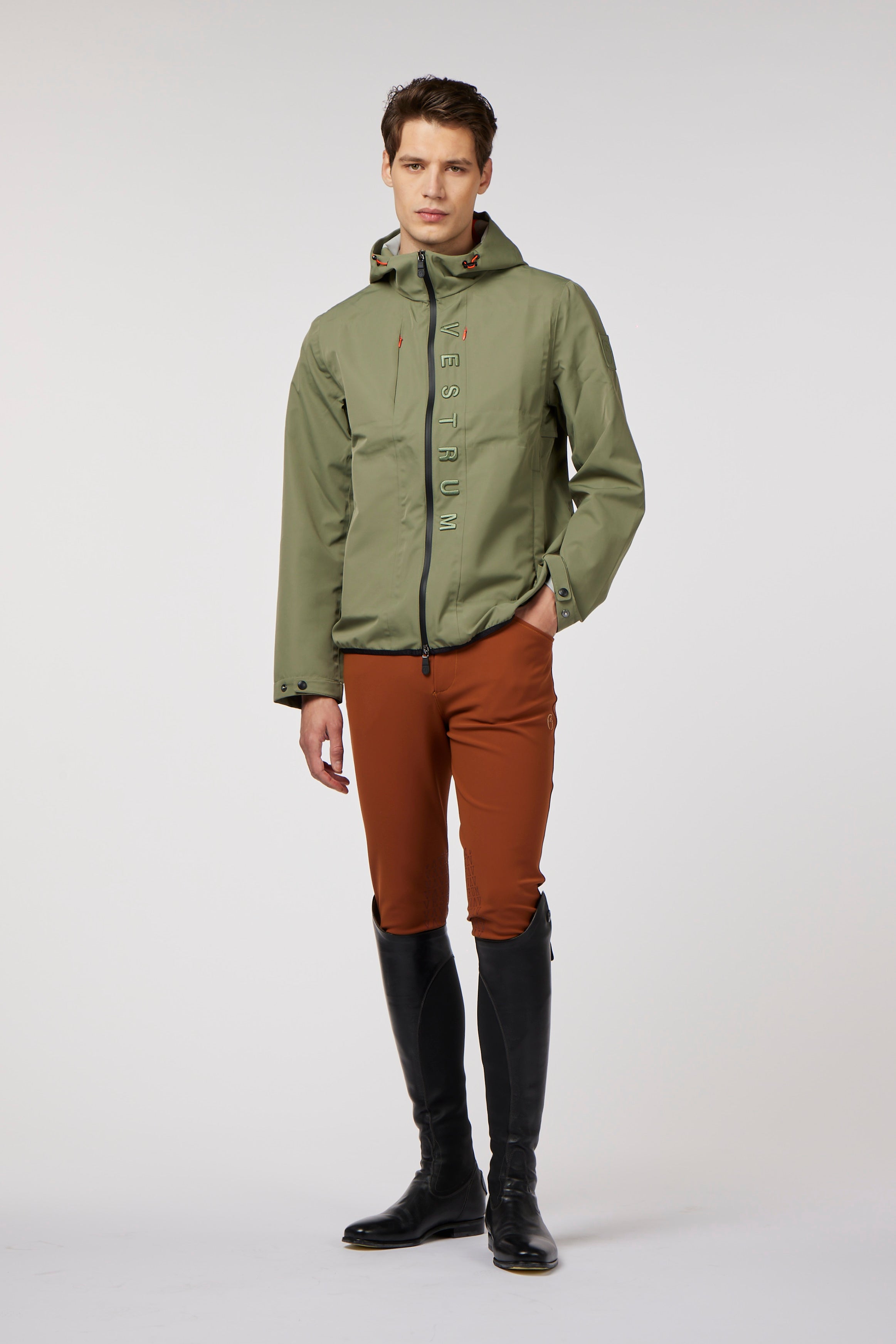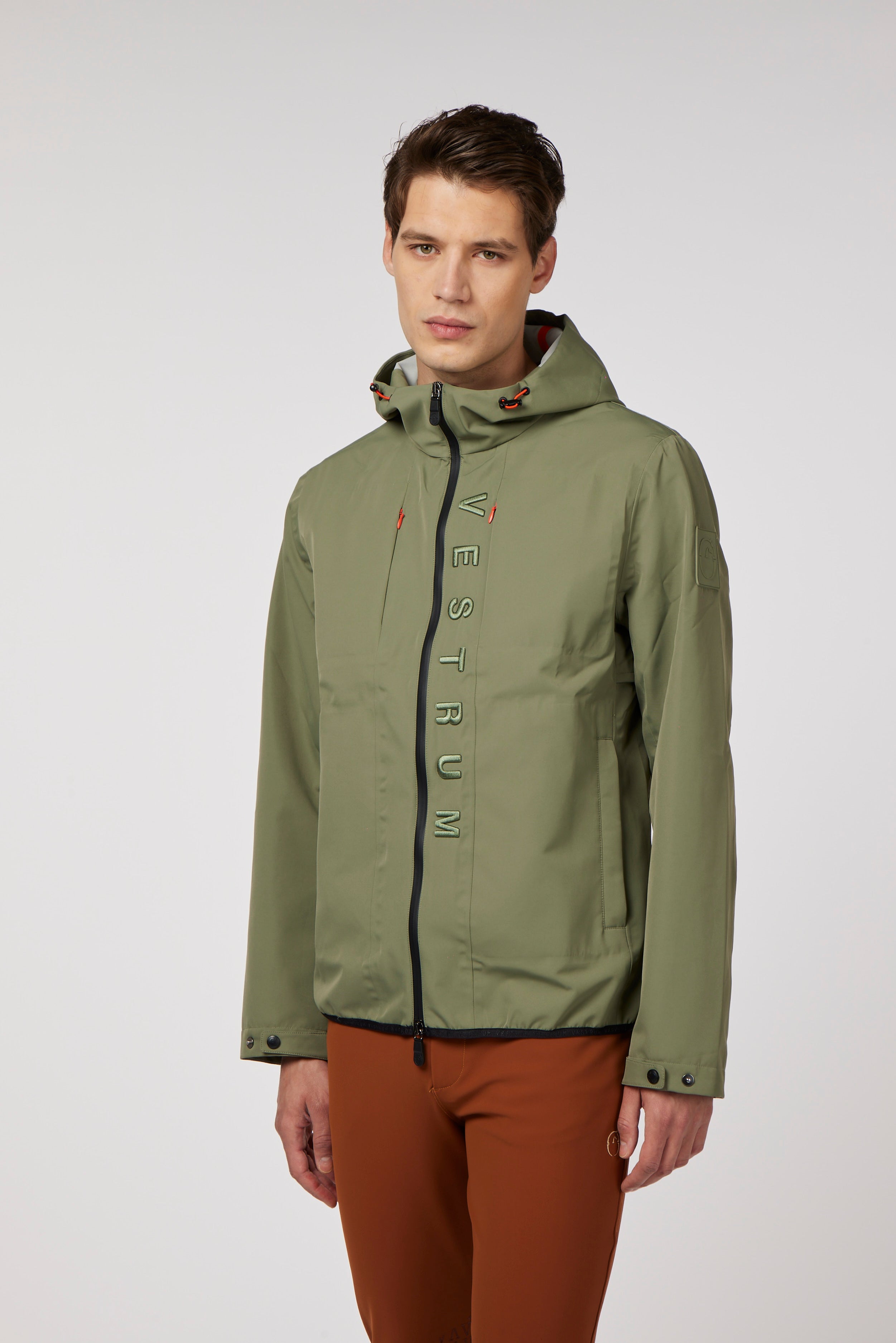 Sorrento is an unlined men's hooded jacket made of water-repellent and windproof fabric. On the front, the zipper is embellished with tone-on-tone Vestrum lettering embroidery and on the sleeve a tone-on-tone stitched patch.