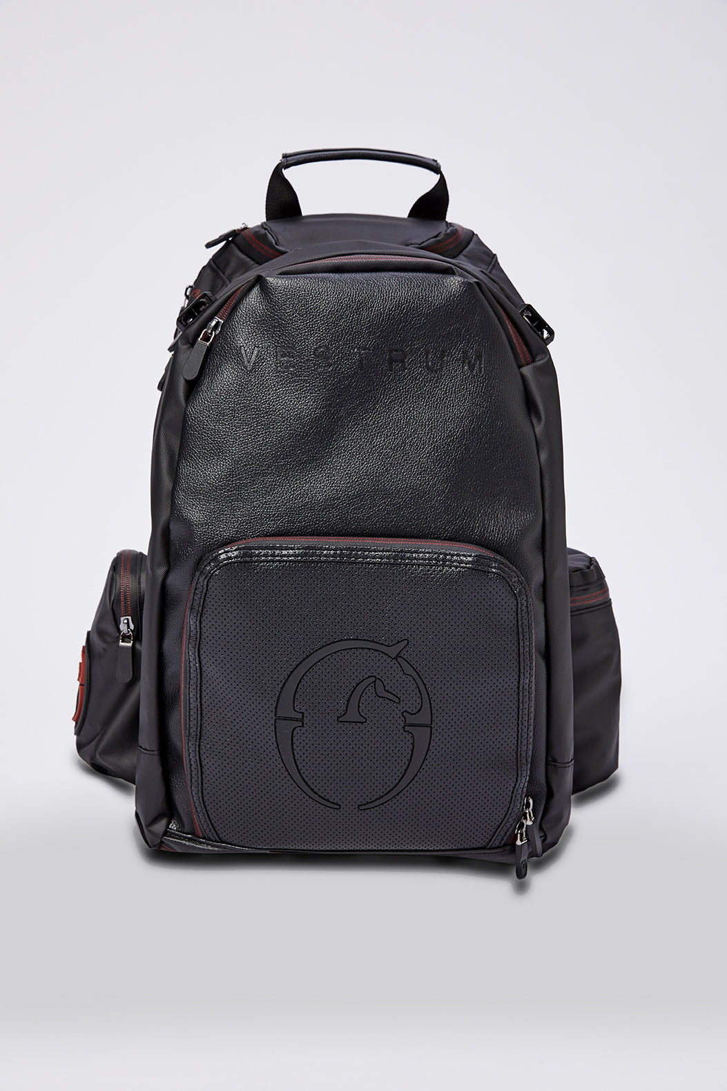 Technical backpack with an exclusive design studied to the smallest detail for optimum storage and transport of the horse's and rider's equipment, but not only! Perfect backpack for competitions, travel and work, unisex multi-pocketed. Sturdy technical fabric, black colour, ergonomic handle and padded, adjustable shoulder straps with backpack anchored to the body designed by means of a buckle, breathable backrest. Numerous pockets and spaces for storing and separating accessories. Vestrum print on front pocket and side patch. Very practical for storing everything you need