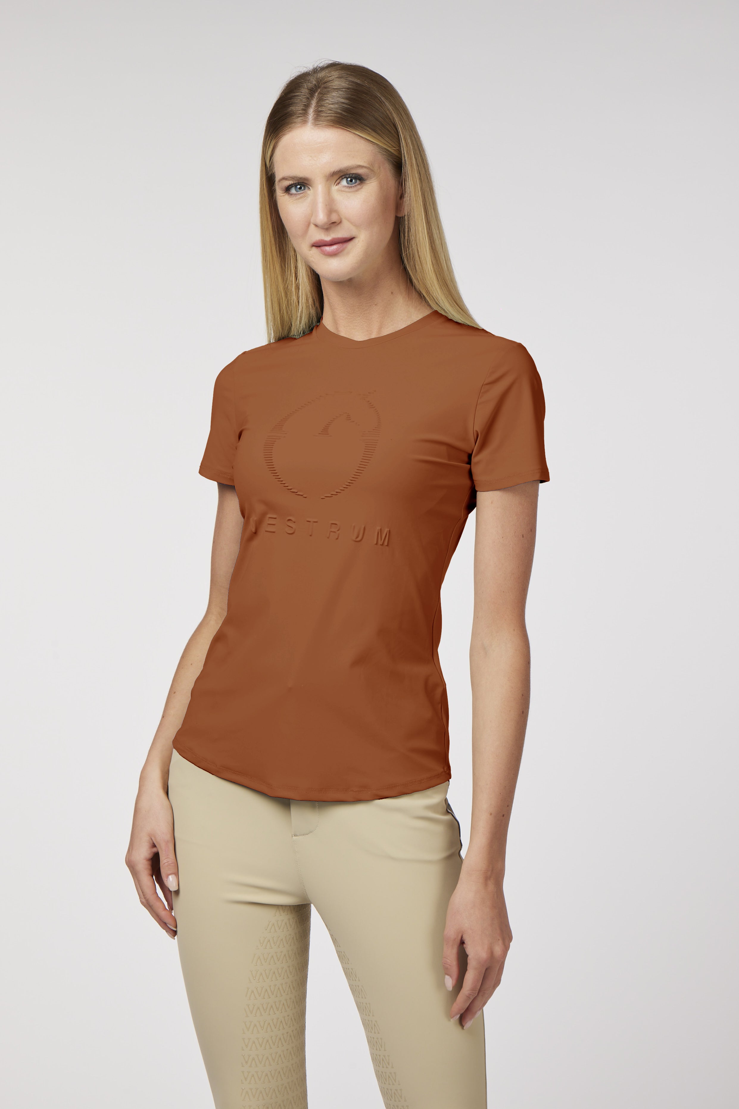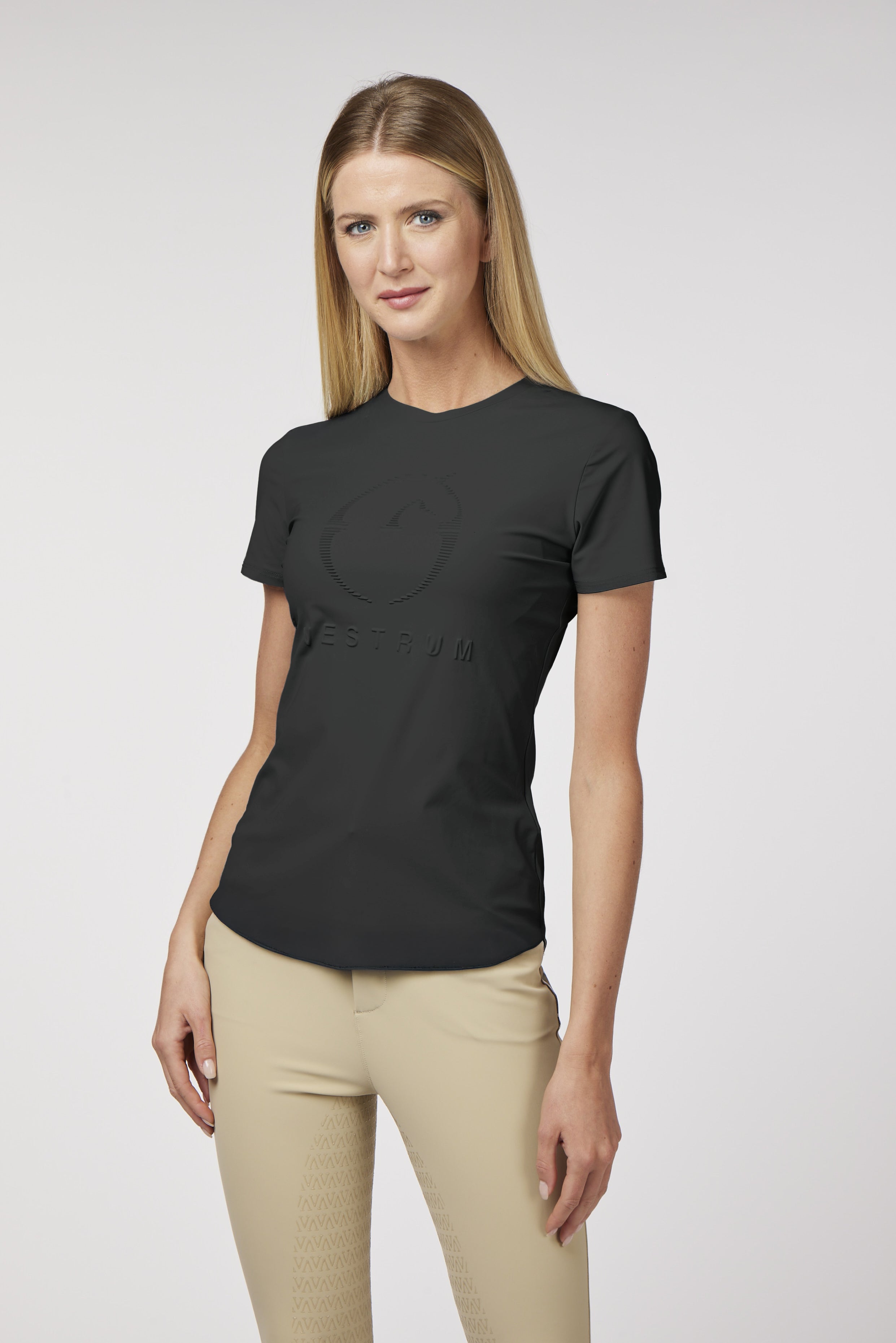 Equestrian training top made of extra-fine bi-stretch fabric that ensures proper breathability due to the technical characteristics of the fabric. T-shirt cut training jersey.